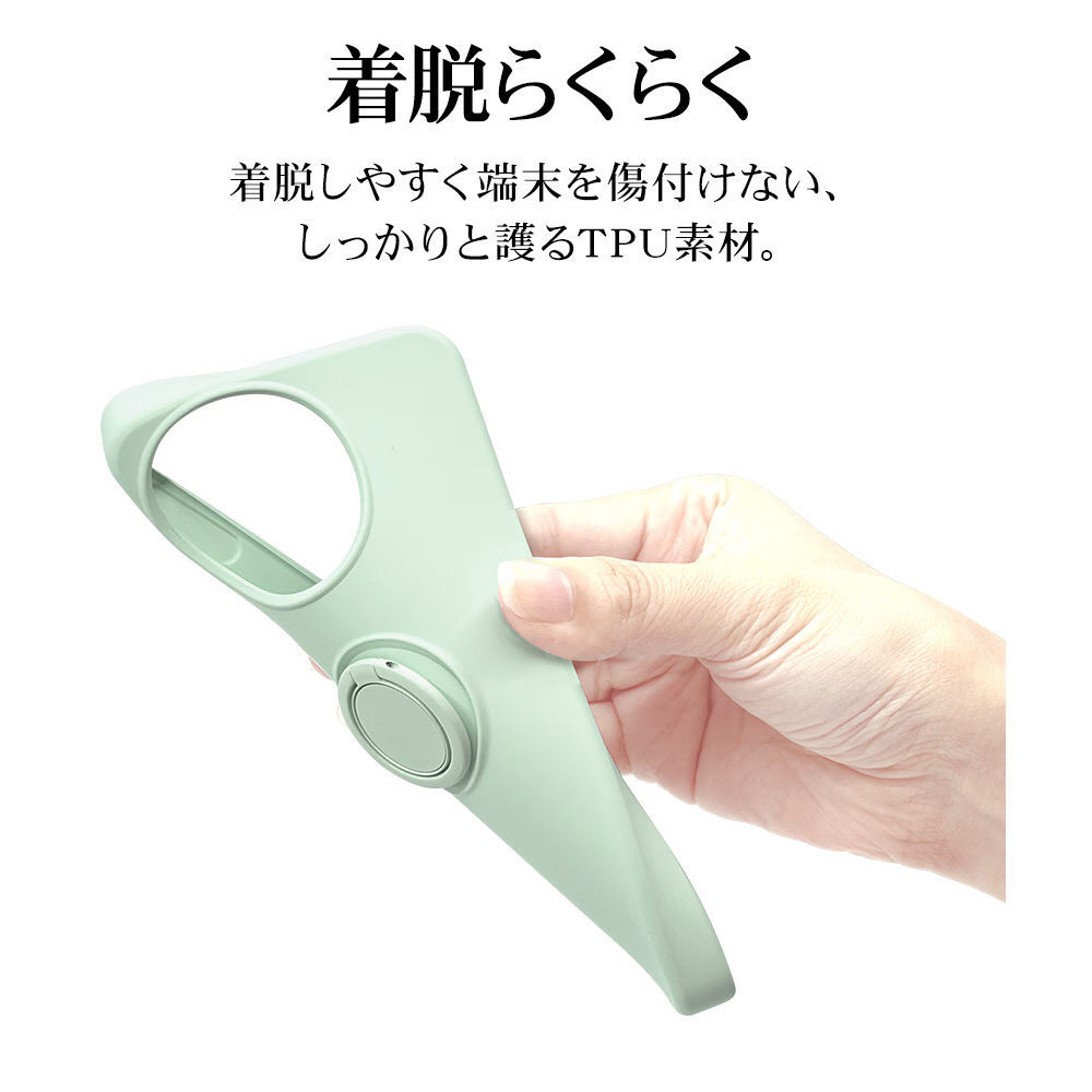 本製品はさらさら質感で指紋が付きにくいTPU素材の、落下防止リング付き背面ケースです。
