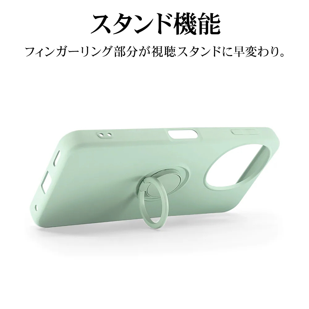 ●開いたリングに立てかけることで横置きの視聴スタンドとしても使用できます。※背面リングを使用する際は必ず端末とケースを一緒に手に持ってください。リングのみを持って宙づりにしたり、振り回す等の行為はしないでください。 端末の落下や本製品の破損の原因となります。