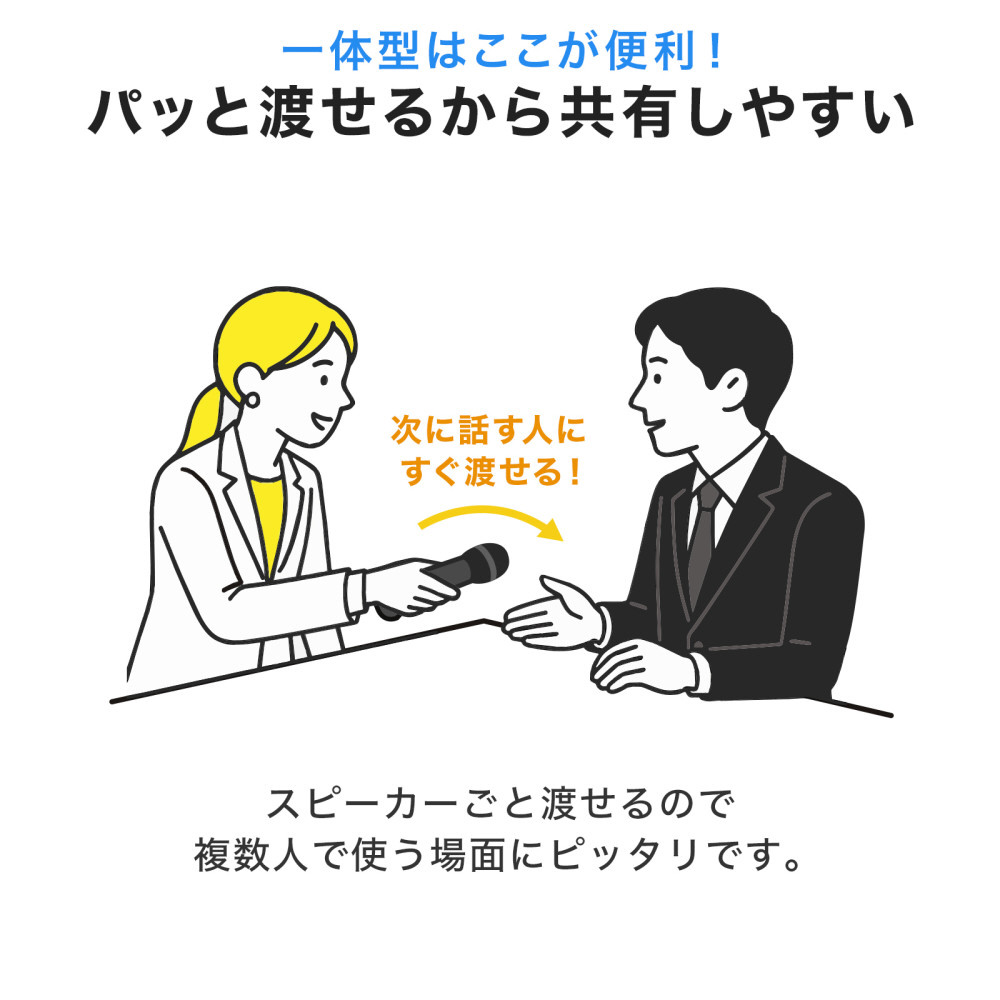 ハンドマイクで話した声がそのまま拡声出力でき授業や小規模ミーティング等に最適なポータブル拡声器スピーカー。Bluetooth対応。出力15Wの高出力。