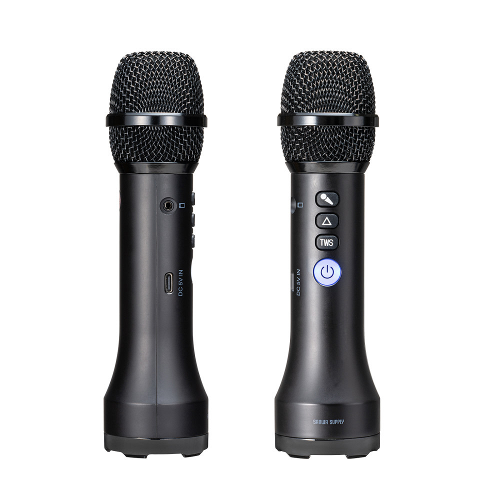 ●本製品2台を1台のスマートフォンにBluetooth接続できるTWS機能搭載し、同時に音楽再生もできデュエットも可能です。またエコーモードを搭載しておりカラオケ利用にも最適です。