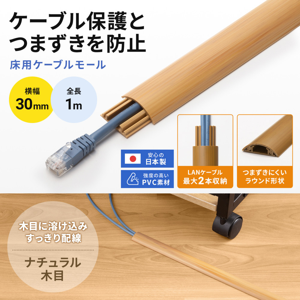 「床用ケーブルモール(幅30mm・長さ1m・ナチュラル木目)」