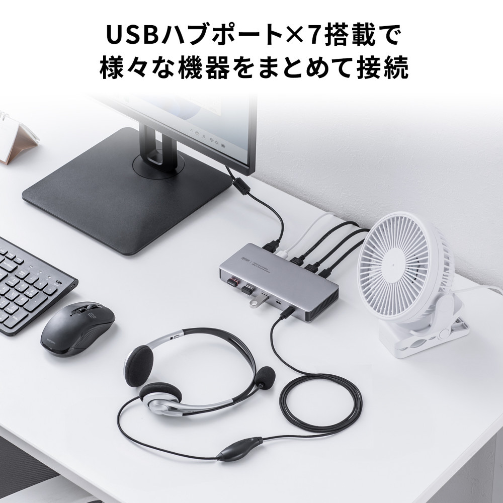 ■7ポートのUSBハブポートを備え、複数の機器をまとめて接続できます。