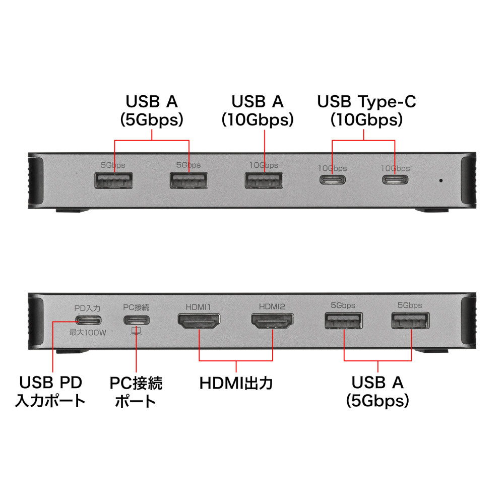 「USB Type-Cドッキングステーション(HDMI×2画面・USBハブ×7ポート)」