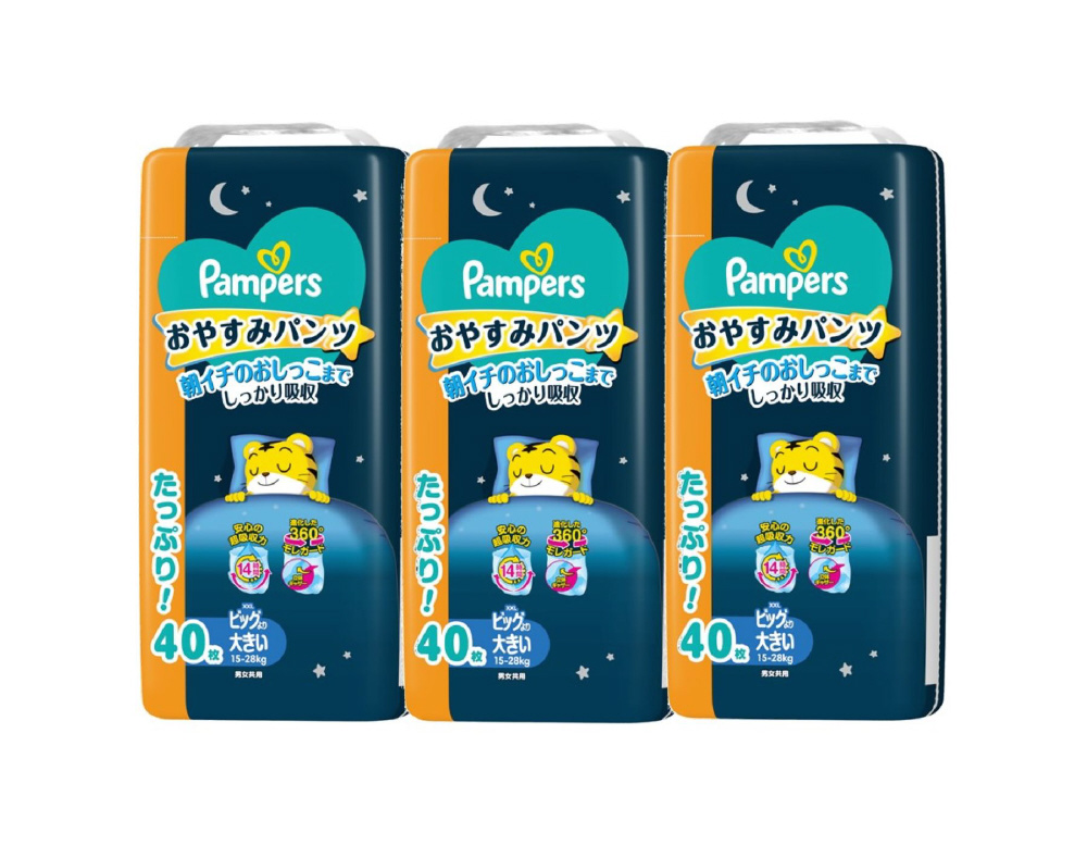 【ケース販売】Pampers(パンパース) おやすみパンツ ウルトラジャンボビッグより大きい(15-28kg)40枚×3個