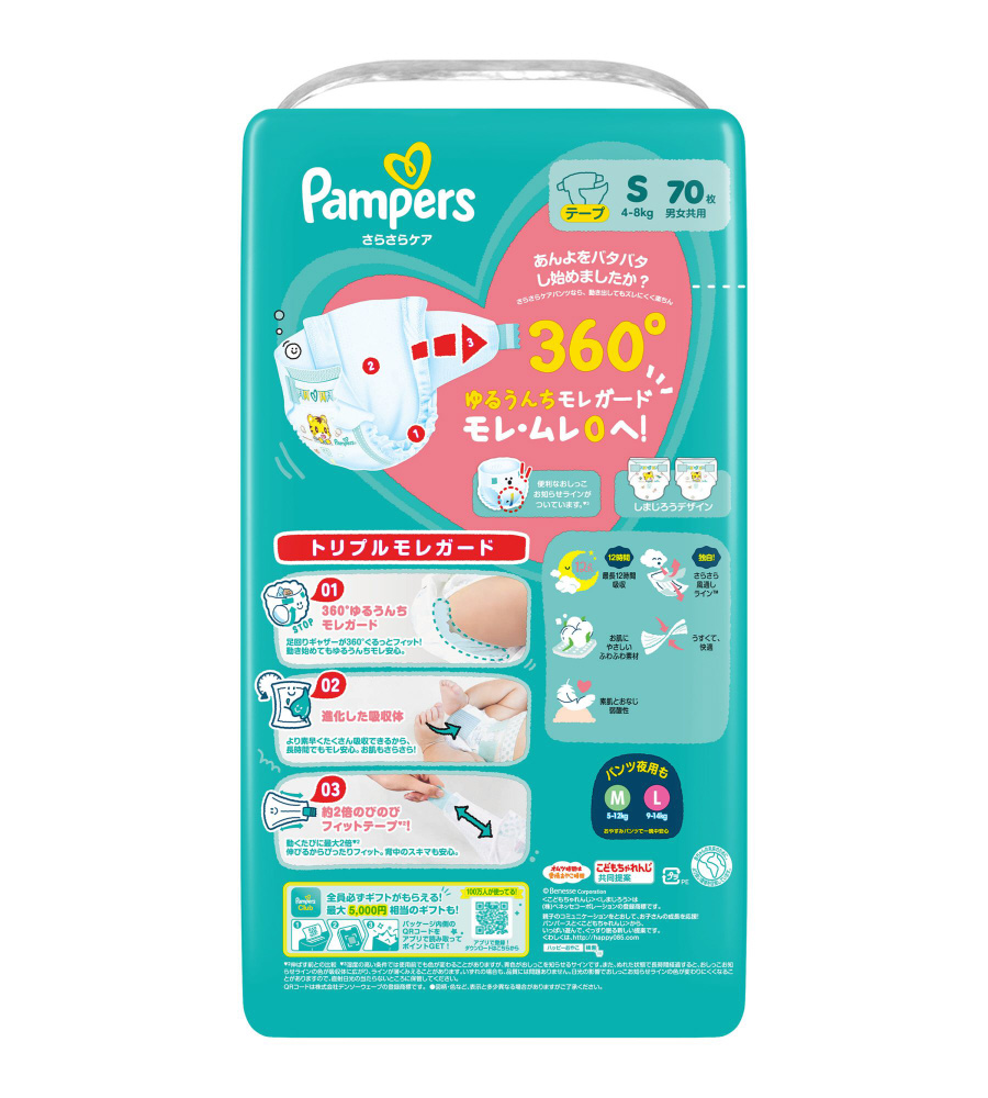 【ケース販売】Pampers(パンパース)さらさらケア テープ  スーパ-ジャンボ S(4-8kg)70枚×4個