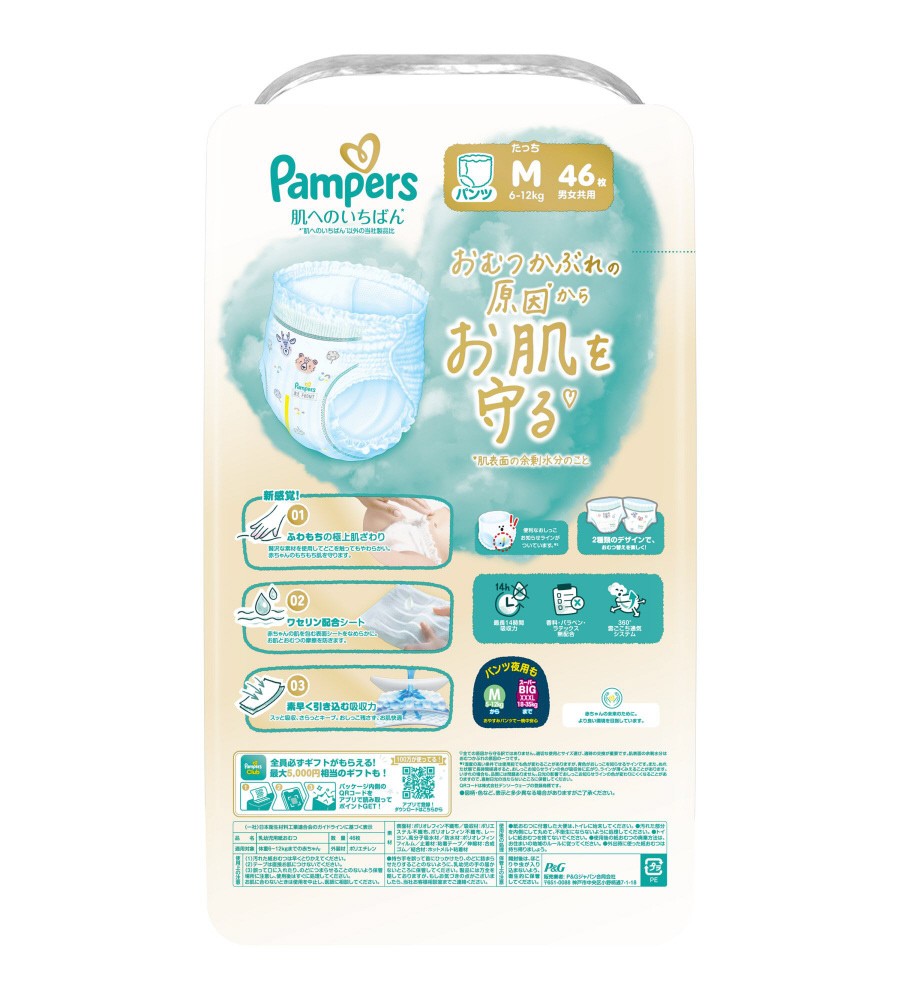 【ケース販売】Pampers(パンパース) 肌へのいちばんパンツ スーパージャンボMたっち(6-12kg)46枚×4個