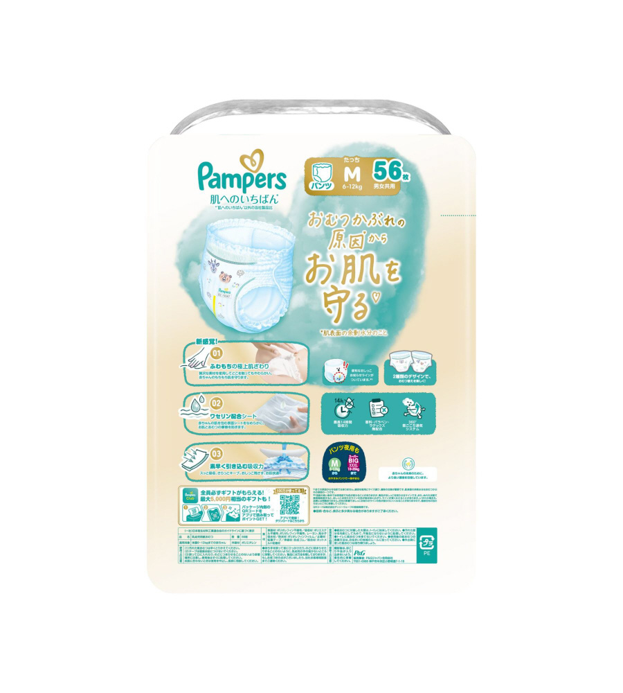 【ケース販売】Pampers(パンパース) 肌へのいちばんパンツ ウルトラジャンボMたっち(6-12kg)56枚×3個