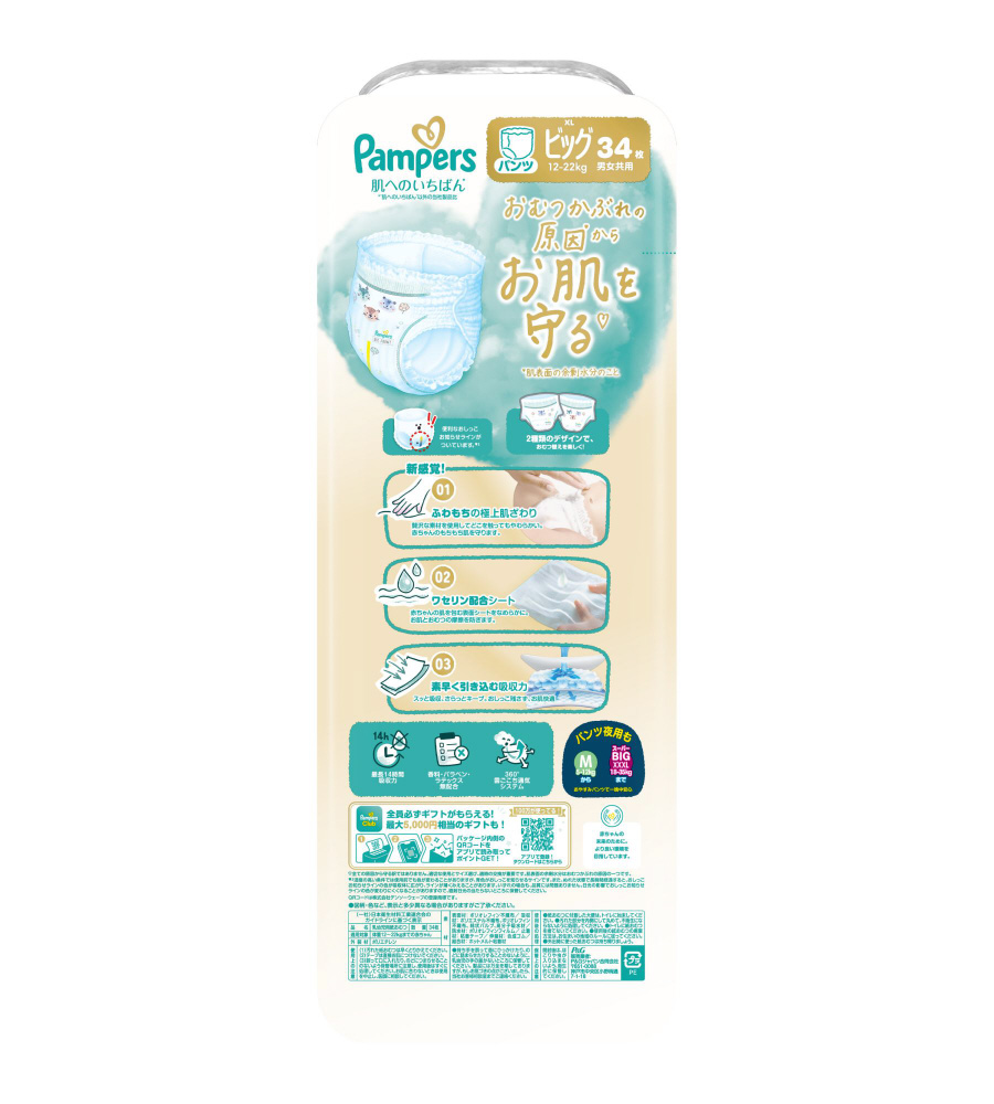 【ケース販売】Pampers(パンパース) 肌へのいちばんパンツ スーパージャンボビッグ(12-22kg)34枚×4個