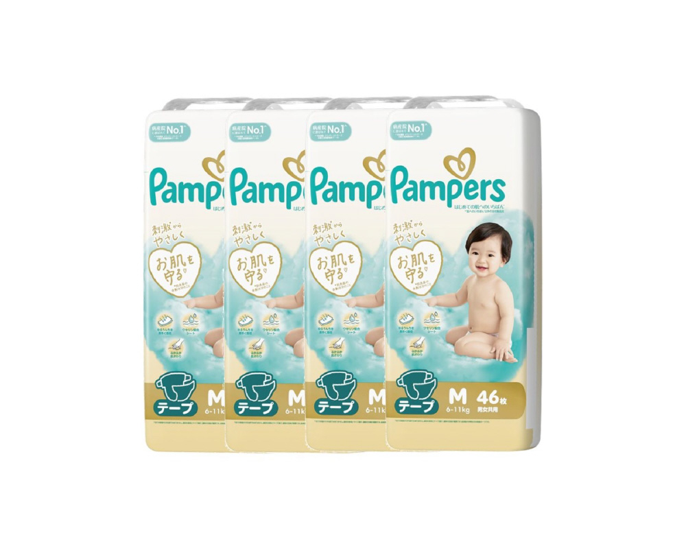 【ケース販売】Pampers(パンパース) はじめての肌へのいちばん スーパージャンボM(6-11kg)46枚×4個