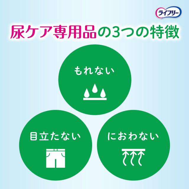 尿成分を研究したサッと引き込みスッと消える世界初スピードインシートなので、出た瞬間から表面に残る間もなく吸収。ぬれた感じが気にならないからモレ安心。ニオイを閉じ込める消臭ポリマー※配合。※アンモニアについての消臭効果がみられます。ズレ止めテープ搭載。
