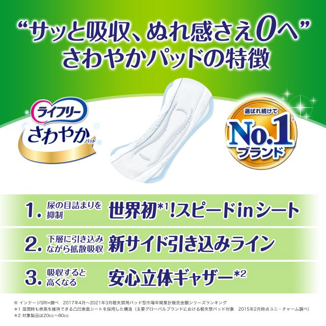 モレ安心、ぬれ感0へ!消臭ポリマー配合。