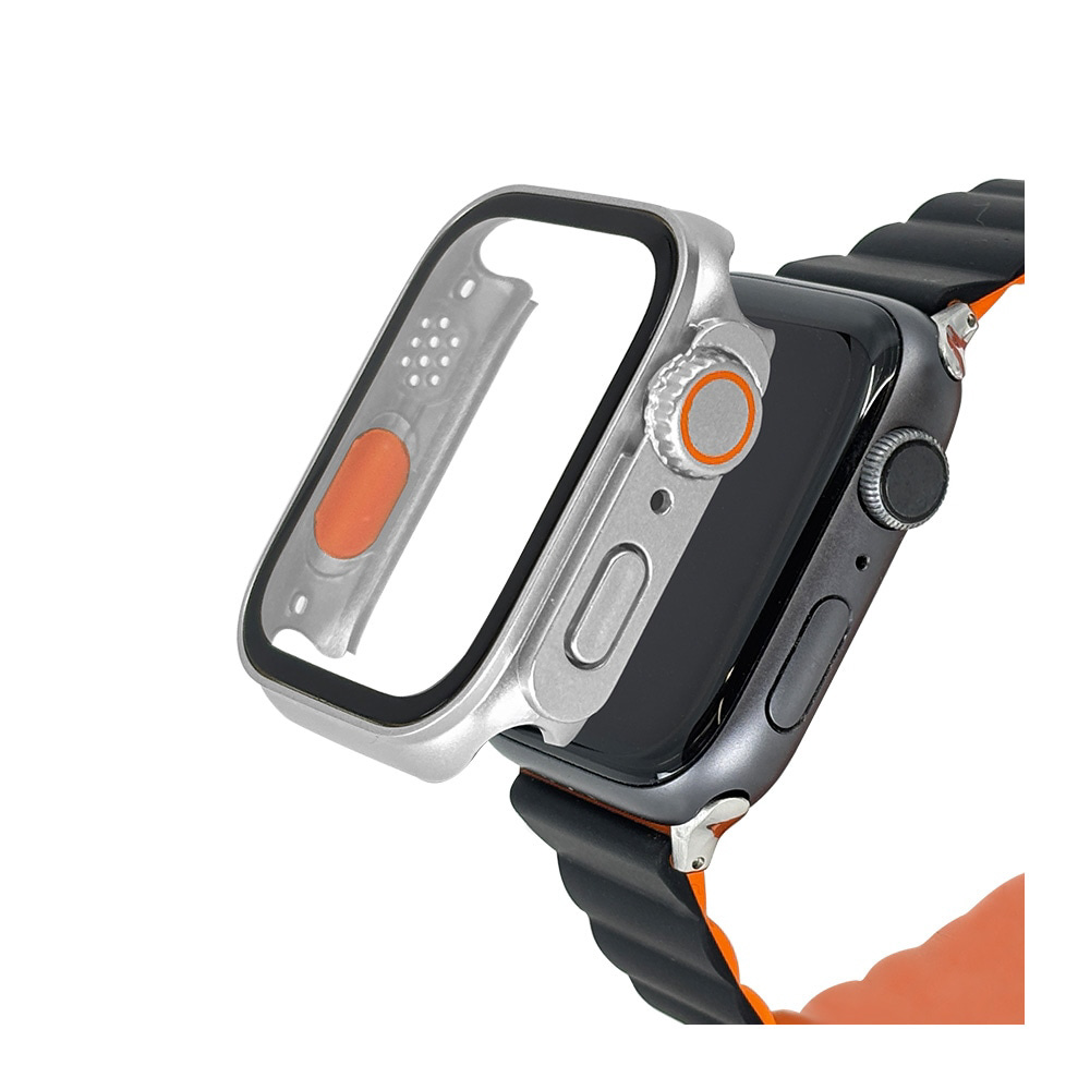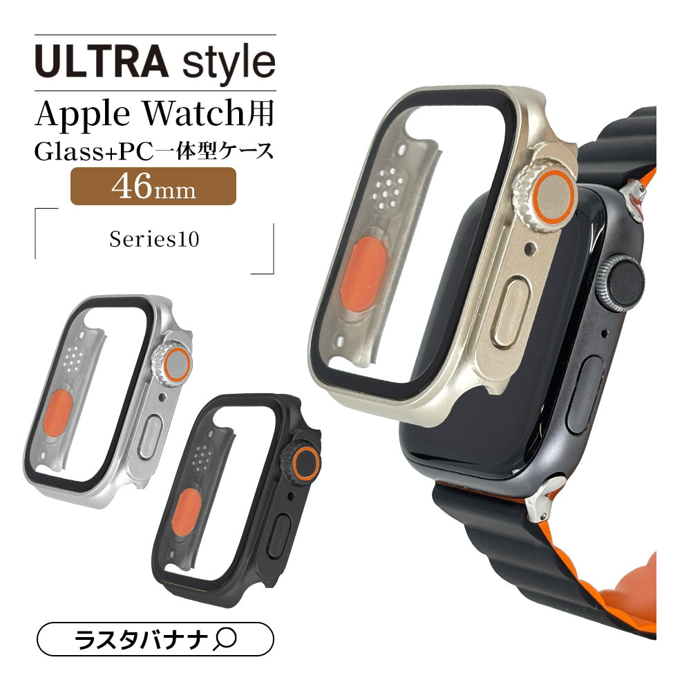 Apple Watch series10 46mm ガラスフィルム ケース カバー ハイブリッド 高光沢 高透明 PC+GLASS ガラス一体型プロテクター 表面硬度8H アップルウォッチ シルバー GHB5153AW46