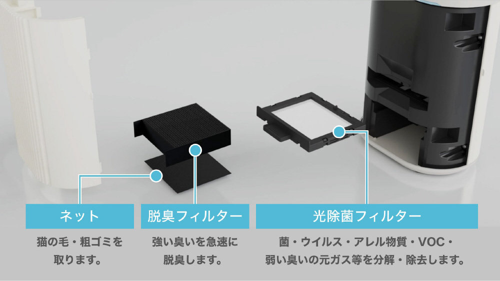 1,猫の糞尿の臭いを素早く脱臭 ・においセンサーと自動運転機能搭載。