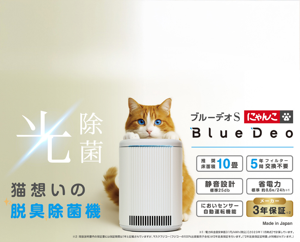 ※ブルーデオS にゃんこモデル(MC-S311C)は3年保証です。