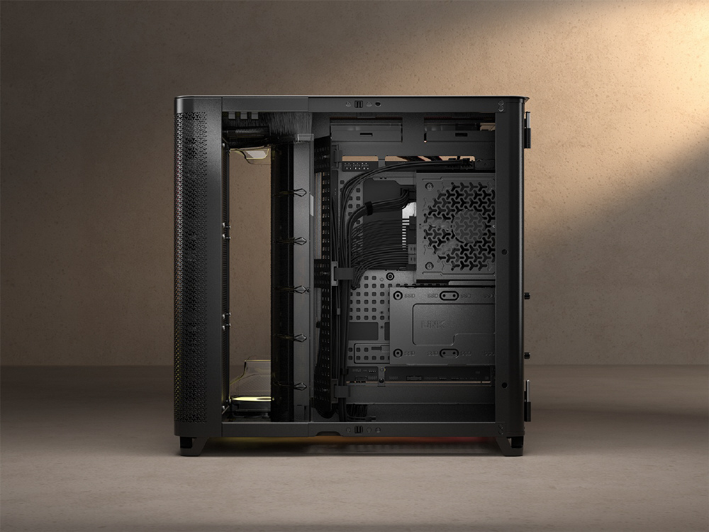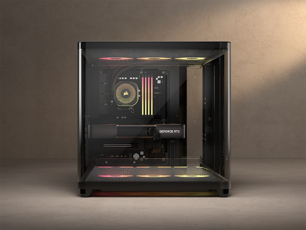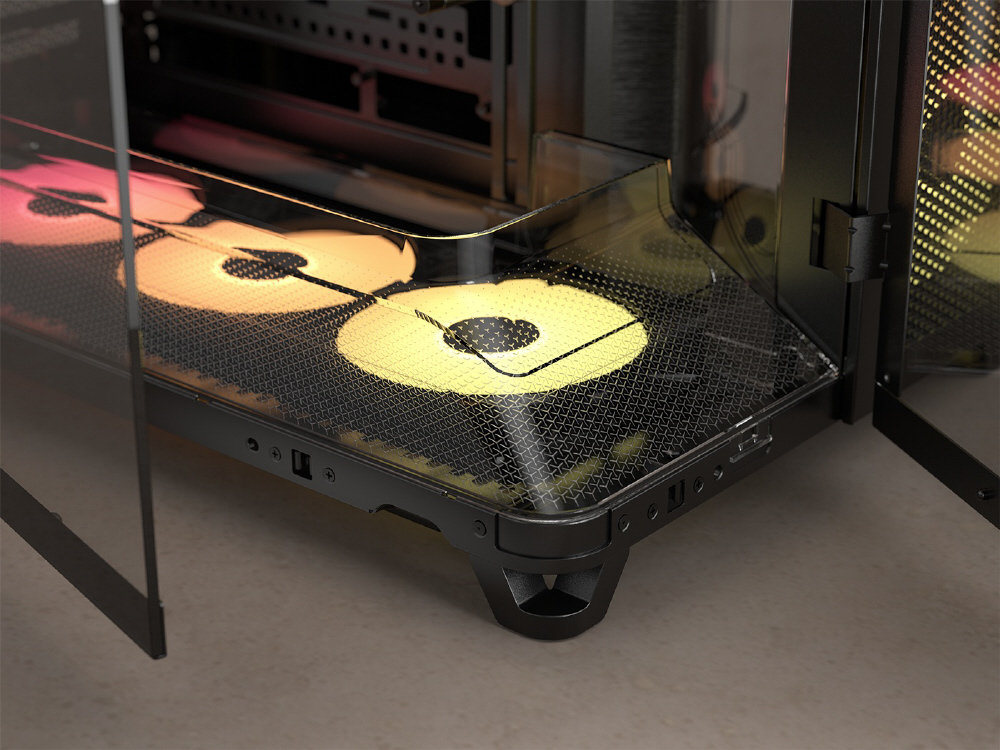 冷却効率を最大化するトリプルチャンバー構造を採用。リバースローター設計のARGBファンを備えるミドルタワー型PCケース