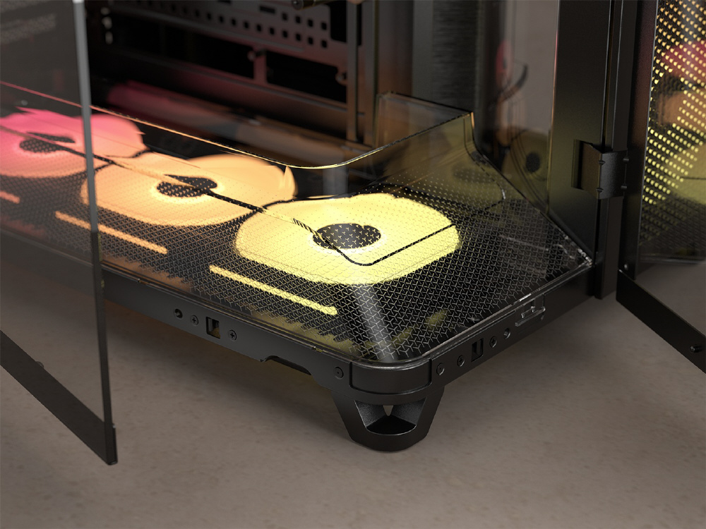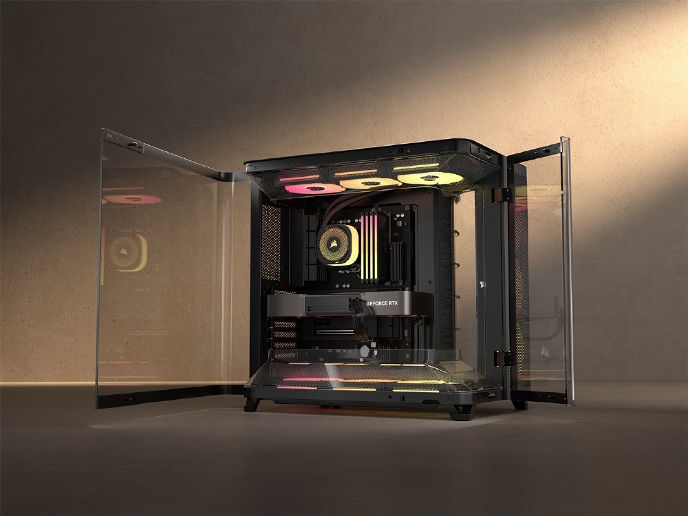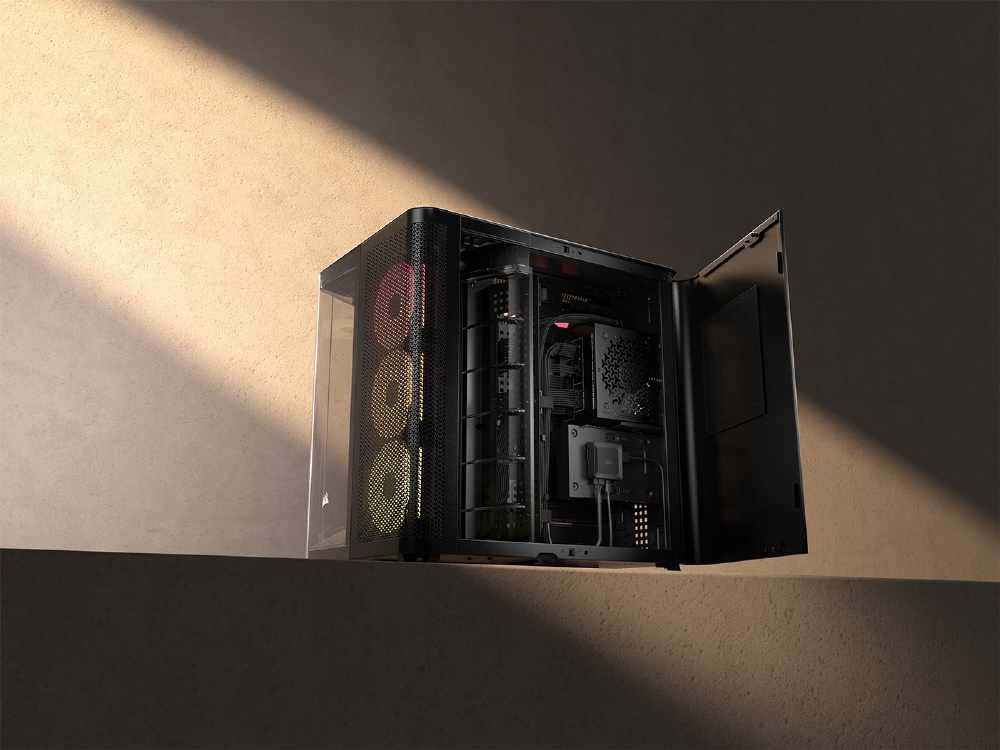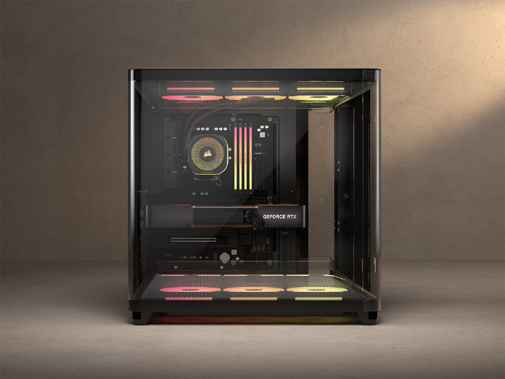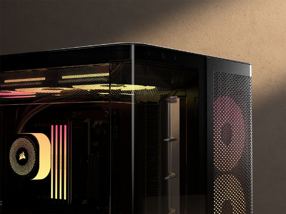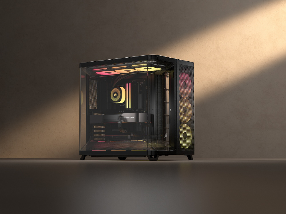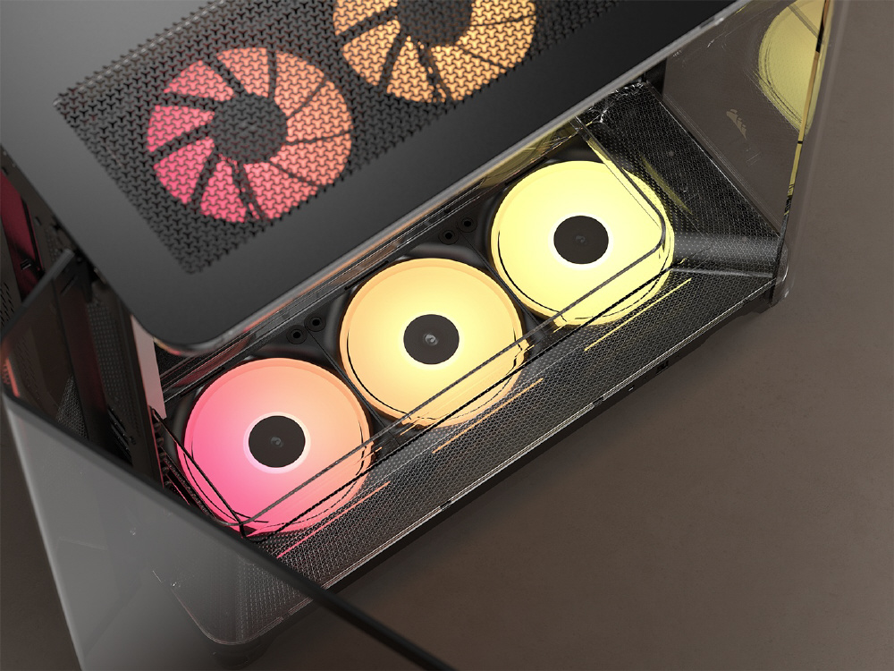 冷却効率を最大化するトリプルチャンバー構造を採用。リバースローター設計のiCUE LINKファンを備えるミドルタワー型PCケース