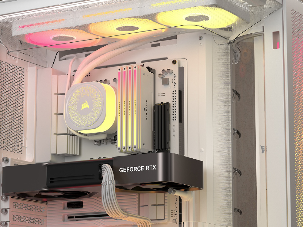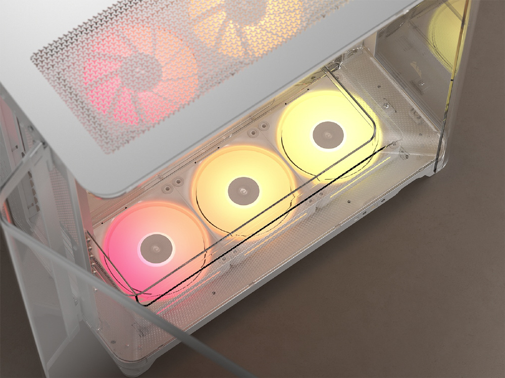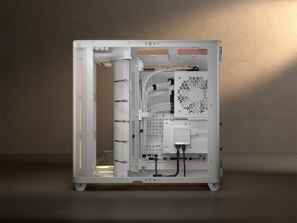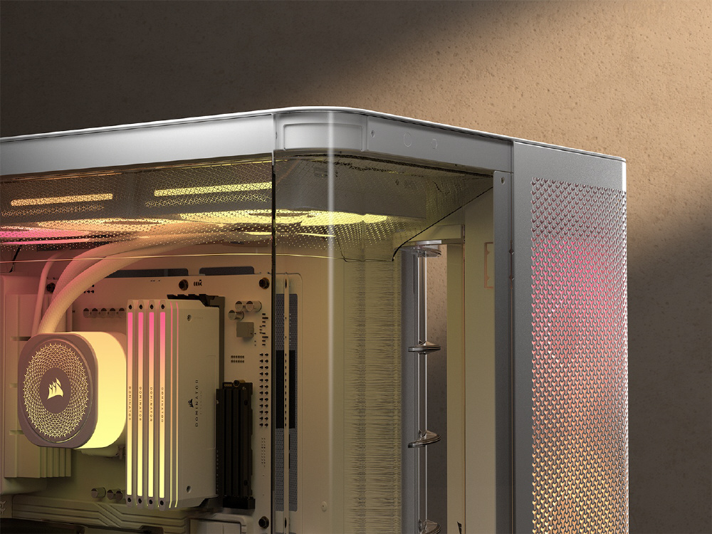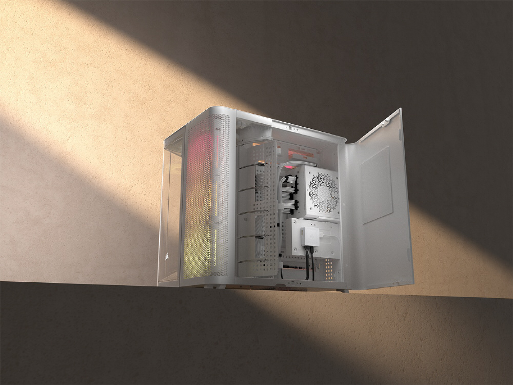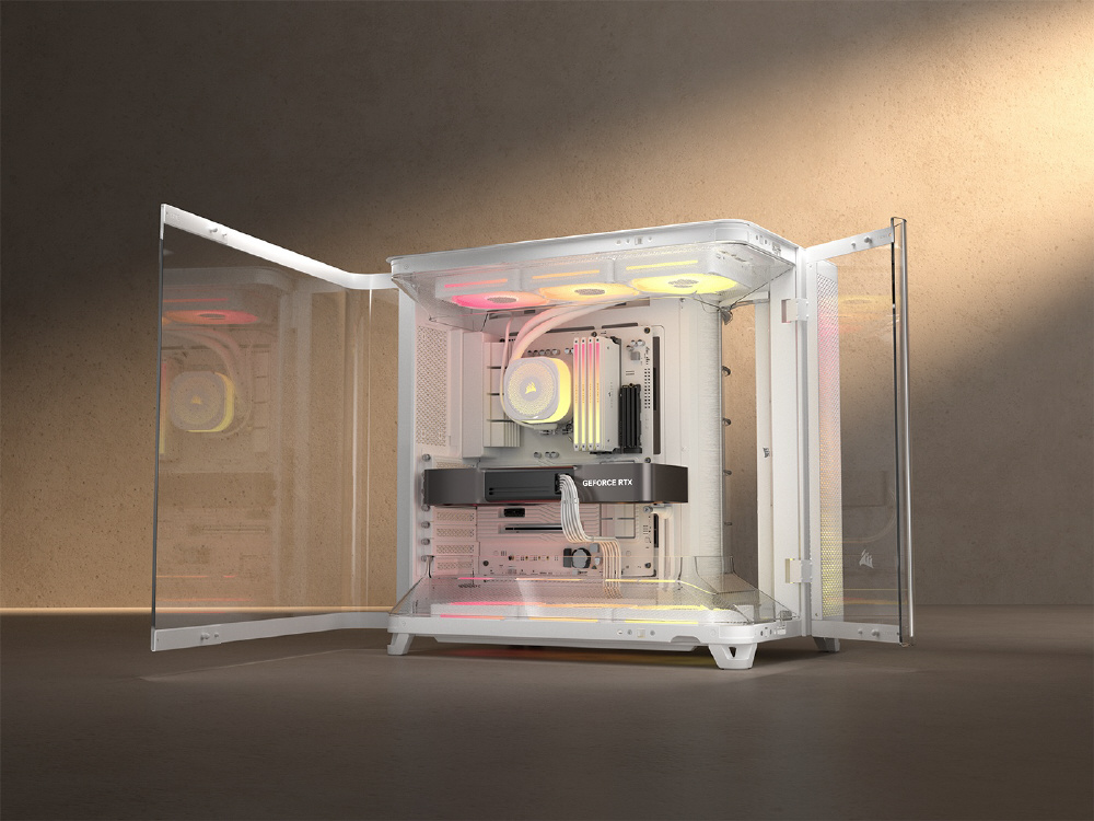 冷却効率を最大化するトリプルチャンバー構造を採用。リバースローター設計のiCUE LINKファンを備えるミドルタワー型PCケース