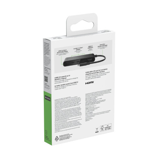 コンテンツクリエイターや生産性の高いプロフェッショナルは、ノートパソコンのUSB-Cポートを拡張して、高解像度モニター、ハードドライブ、ウェブカメラなど最大5台の周辺機器を接続できます。HDMIは最大4K@60Hzのディスプレイをサポートし、転送速度はUSB 3.0の2倍、ホストデバイスへの100W電力供給(PD)で、自宅、オフィス、外出先など、あらゆるシーンで活躍する理想的なハブです。