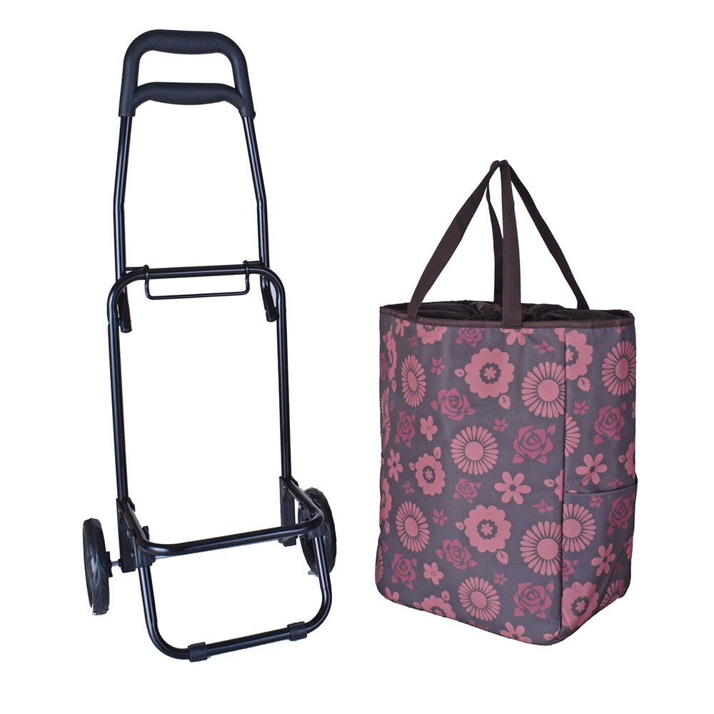 SAXON cue 2way ショッピングキャリーバッグ 保冷&保温 / 二輪 / 取り外しOK ブラウン/花柄 SWAN-5246BRFLW