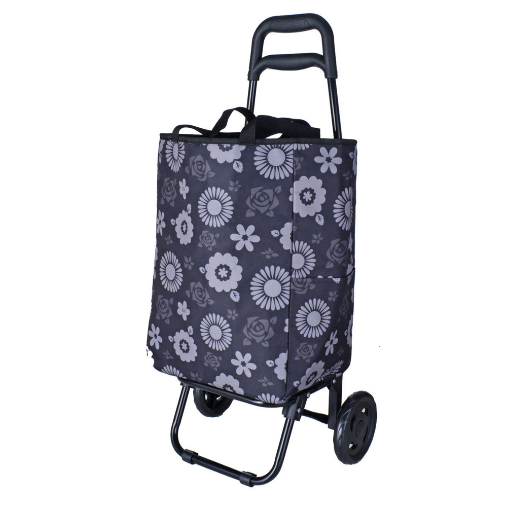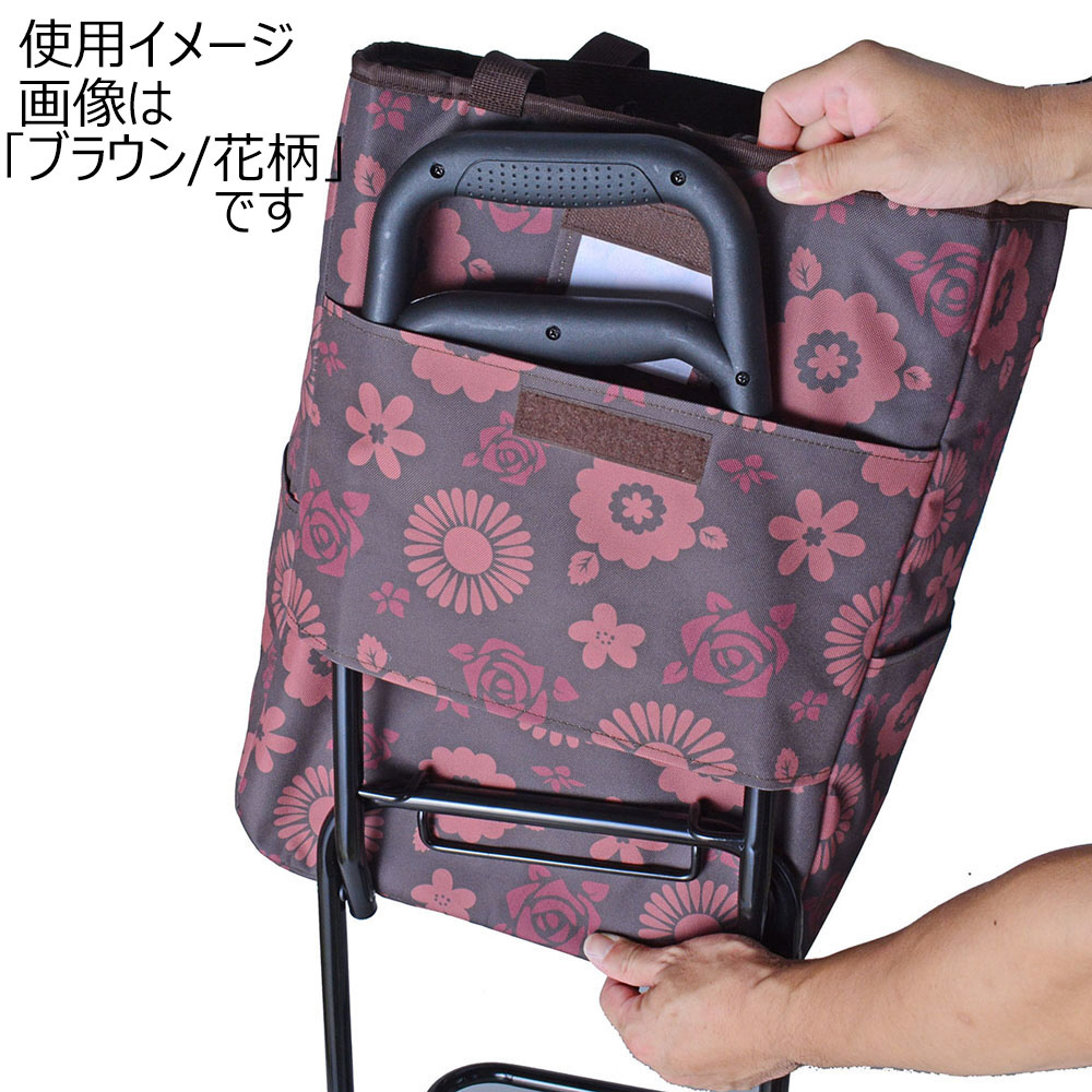 SAXON cue 2way ショッピングキャリーバッグ 保冷&保温 / 二輪 / 取り外しOK ブラック/花柄 SWAN-5246BKFLW