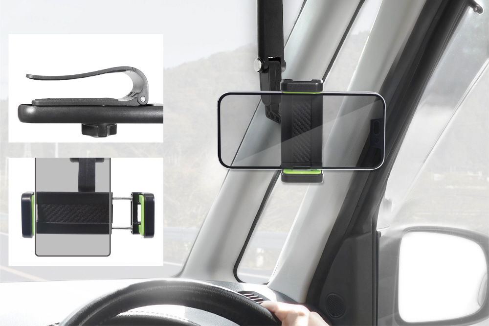角度自由自在!サンバイザー取付タイプのスマホホルダー