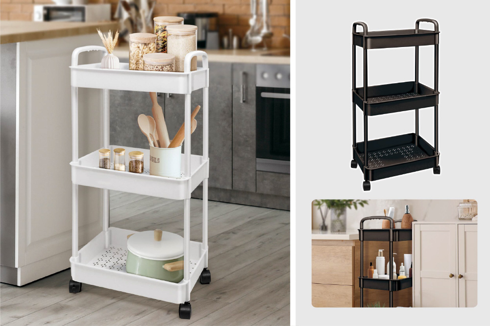 3段収納キャスターラック 黒 ブラック HAC4722