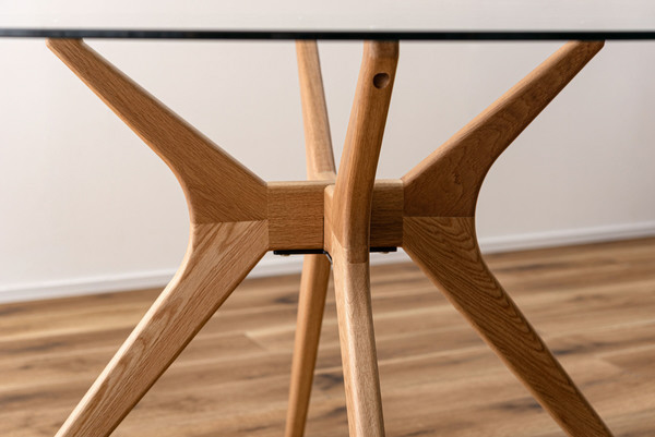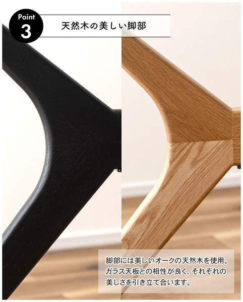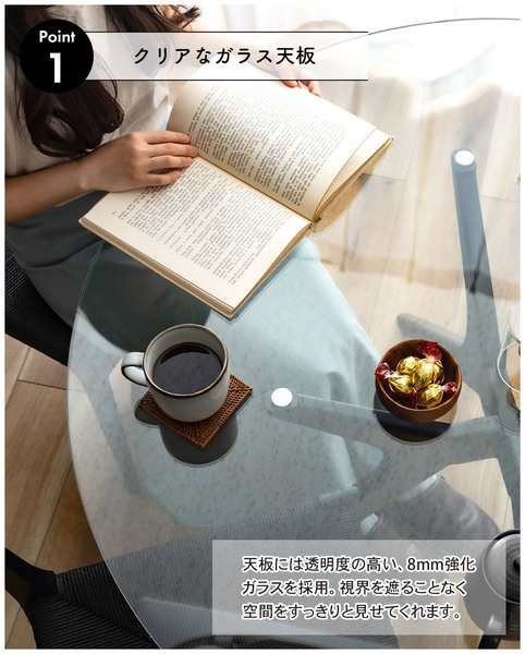 厚み8mmの強化ガラスを使用した天板は、耐久性に優れるだけでなく、開放感のある軽やかな印象を与えてくれます。