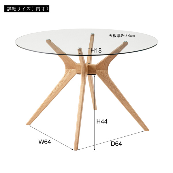 ラウンドガラステーブル(W110×D110×H72cm) ナチュラル RTO-11NA
