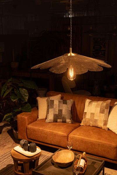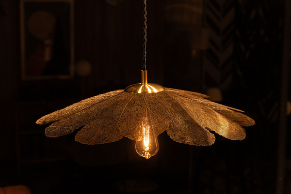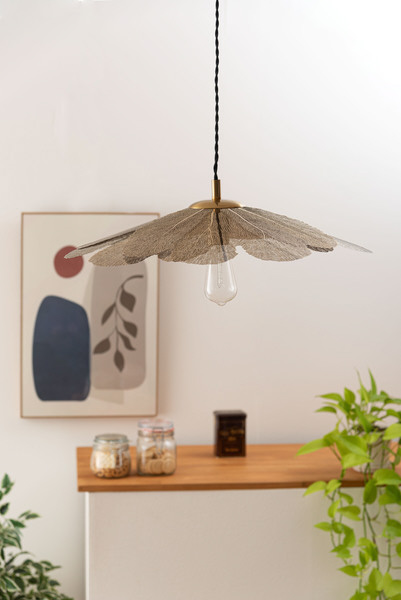 繊細なゴールドのシェードがやわらかな光を透かし、空間に優雅な陰影を描き出します。