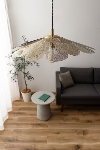 光がシェードを透過するたびに、柔らかなきらめきとともに空間を優雅に包み込みます。