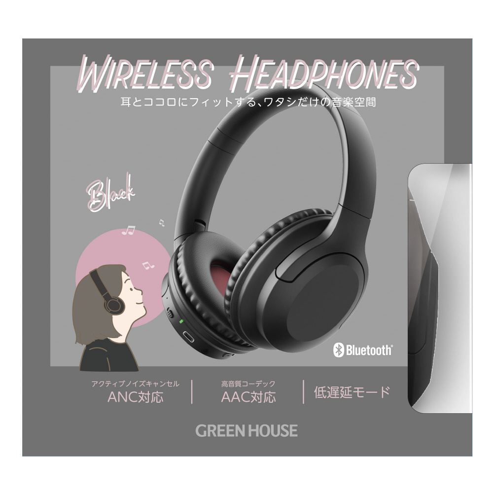 ブルートゥースヘッドホン ブラック GH-HPBC-BK [ワイヤレス(左右コード) /ノイズキャンセリング対応 /Bluetooth対応 /φ3.5mm ミニプラグ]