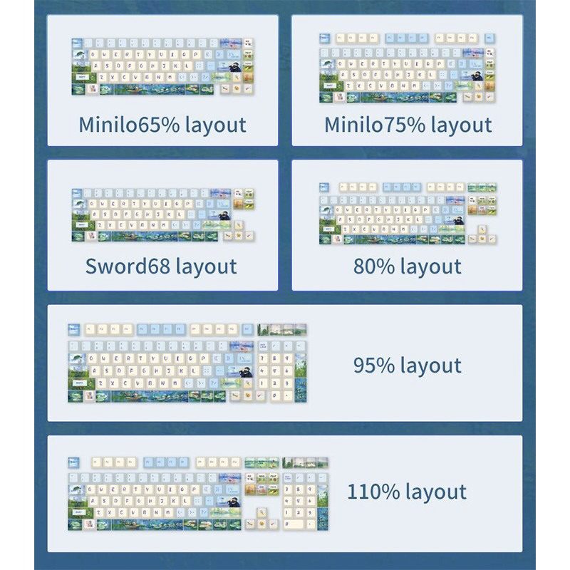 124キー構成で、ANSI配列やVarmilo Miniloシリーズを含む多くのキーボードに対応。