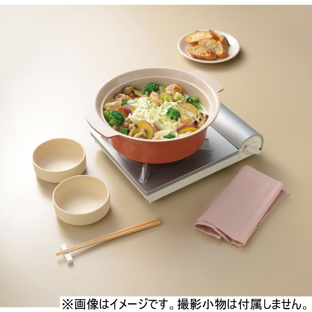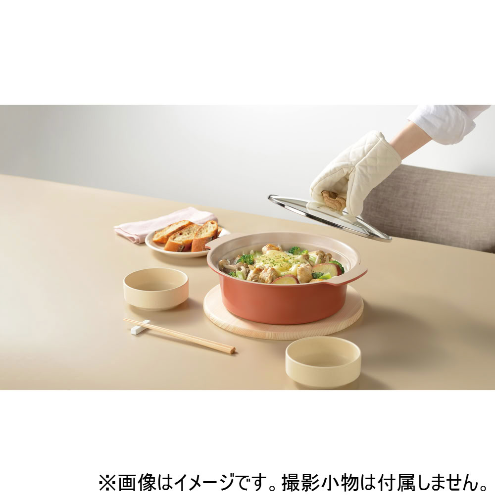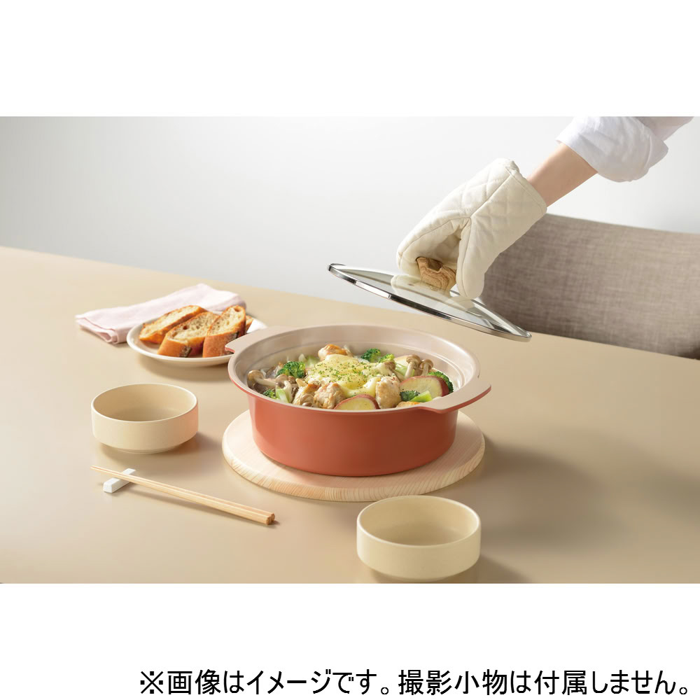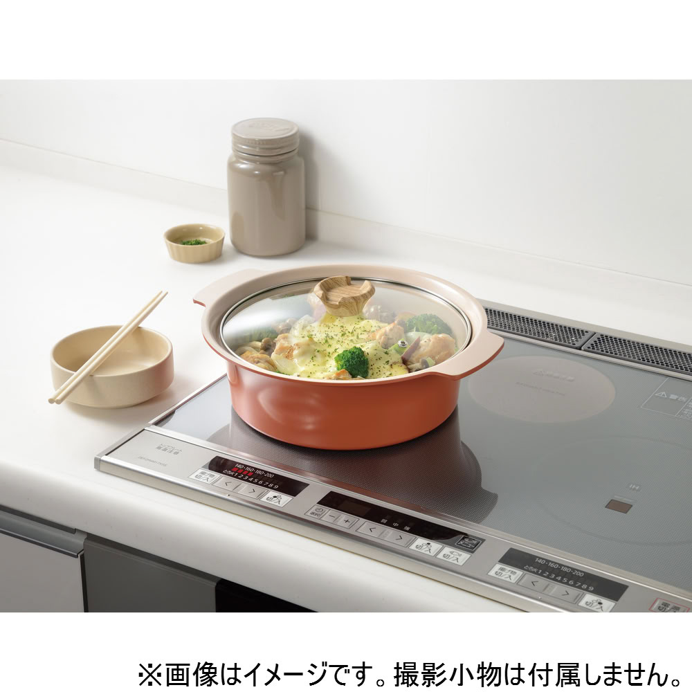 軽くて割れないアルミニウム製。食材の移動や後片付けもラクラク。汚れを落としやすく、キズつきにくいセラミック加工。キッチンだけでなく、カセットコンロや卓上IH調理器でもご使用いただけます。鍋のフチが高いのでふきこぼれにくい。蓋は菜箸やお玉の一時置きに便利です。