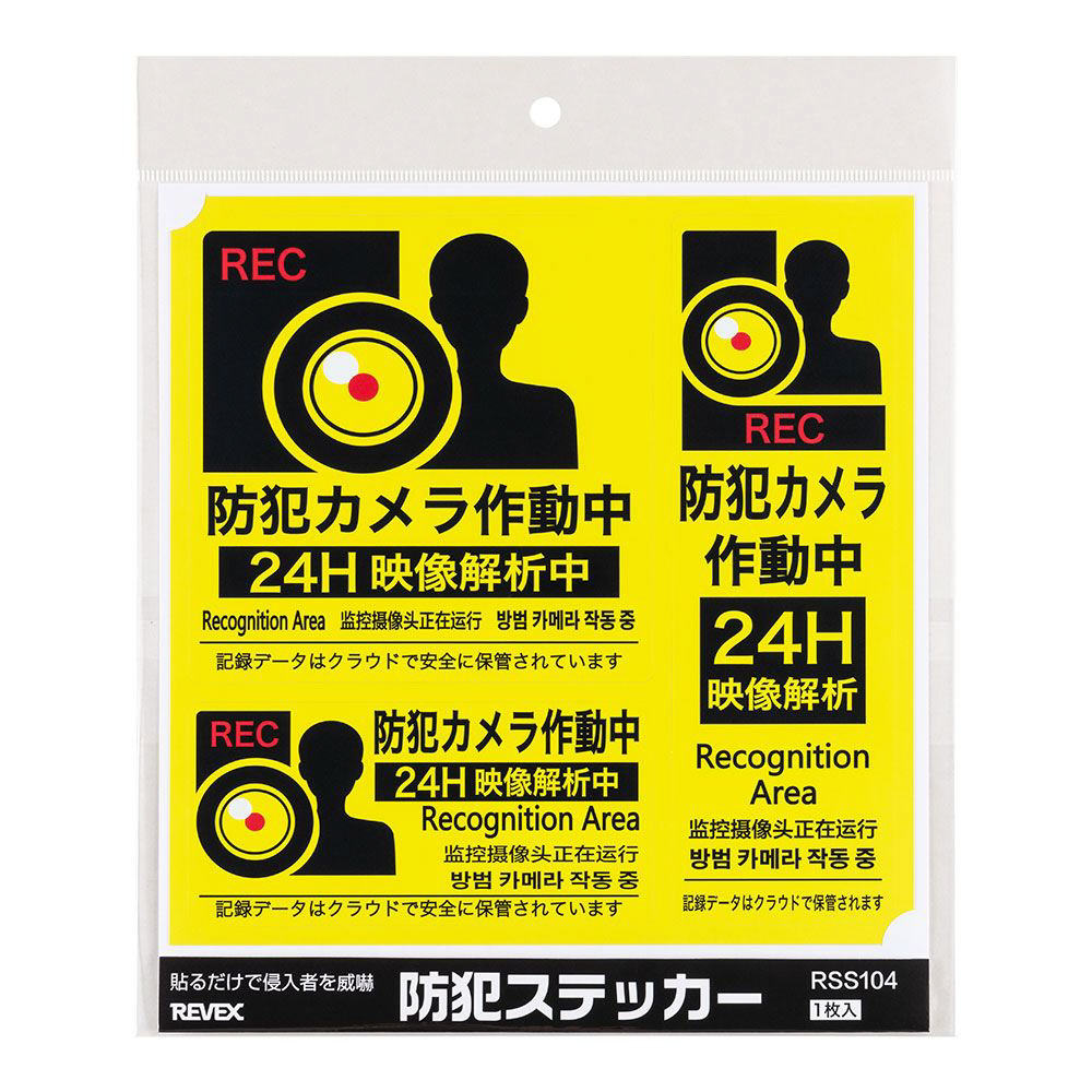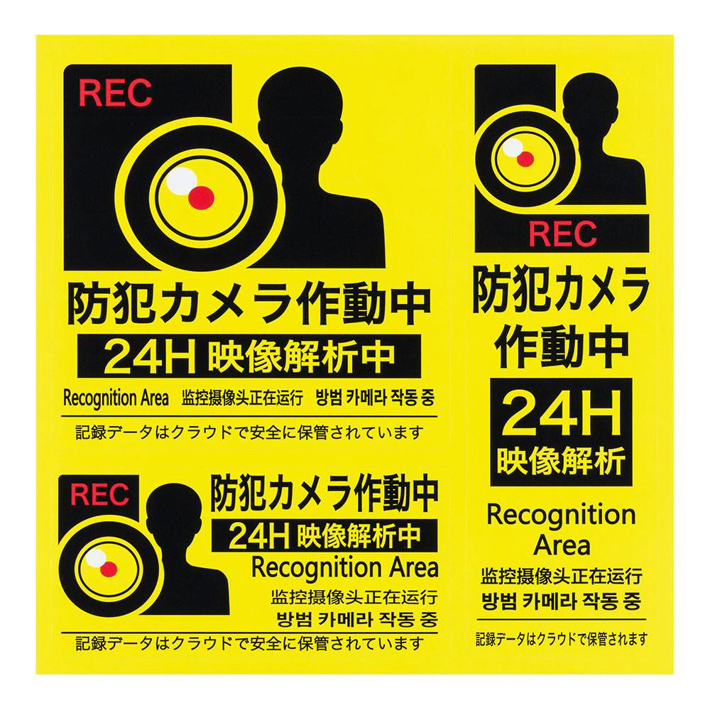 防犯ステッカー「防犯カメラ作動中」4ヵ国語 黄 RSS104