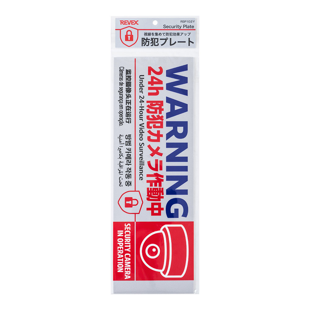 自宅の玄関扉や窓に設置して防犯をアピール6ヵ国語で幅広く対応。