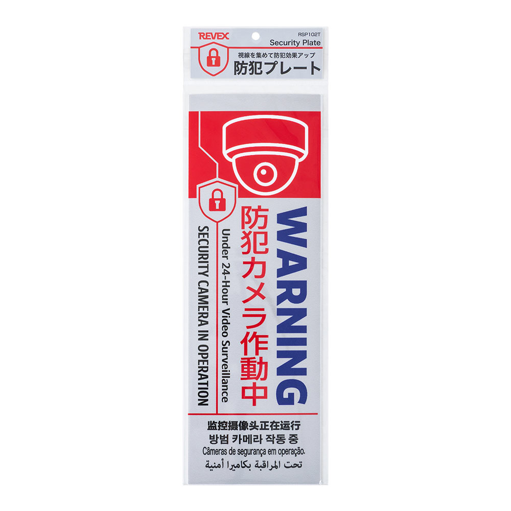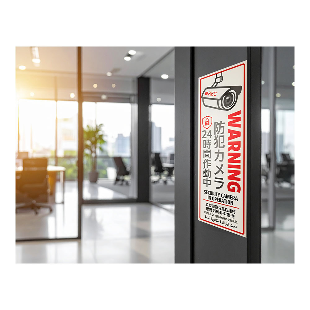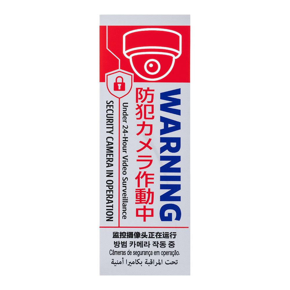 自宅の玄関扉や窓に設置して防犯をアピール6ヵ国語で幅広く対応。