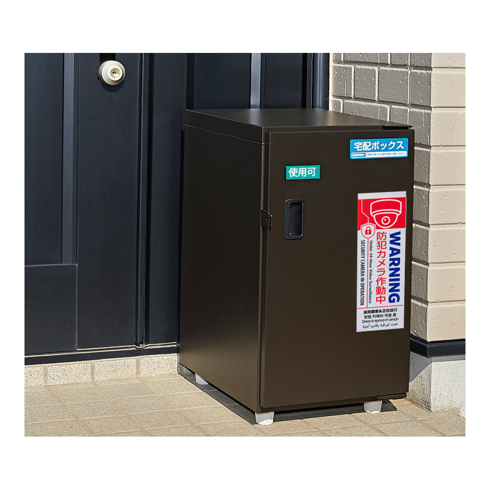 宅配BOXや置き配に不在時の荷物受け取りに防犯プレートでアピール。