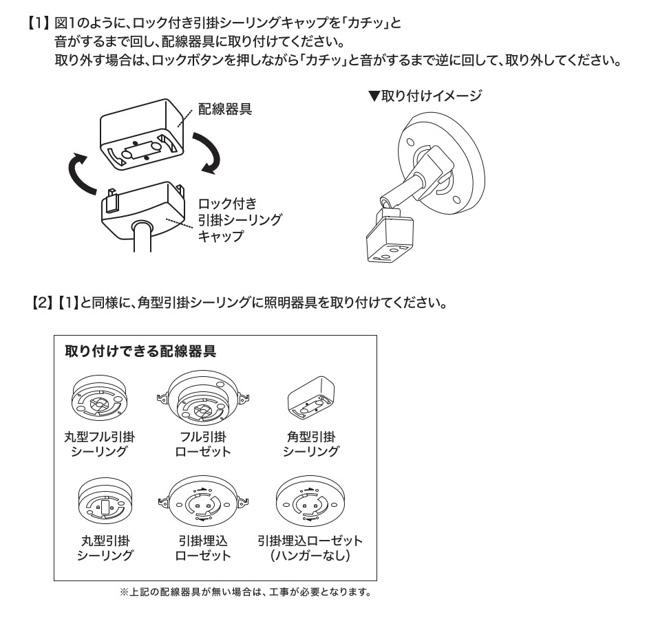 傾斜天井に設置されている引っ掛けシーリングに取り付け、角度を変えて照明器具をご使用いただけます。