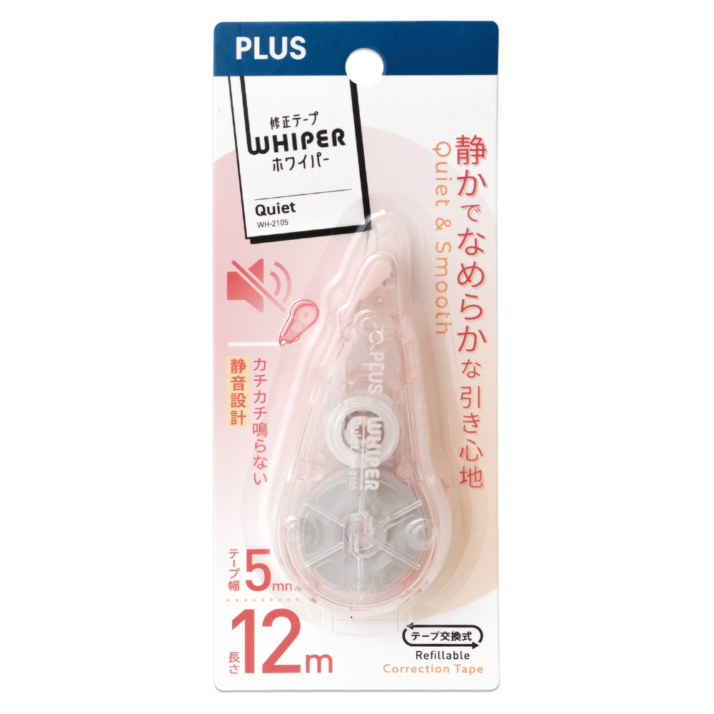 テープを引くときの音を約90%(※)カットした静音設計の修正テープ「ホワイパー クワイエット」。自習室や図書館、コワーキングスペースなどの静かな場所でも安心かつ快適に使うことができます。「ホワイパー」シリーズならではの「ミニローラーヘッド」や「薄さらテープ」による使いやすさや機能性はそのままに、静かでなめらかな引き心地を実現しました。※当社比、音圧パスカルでの比較