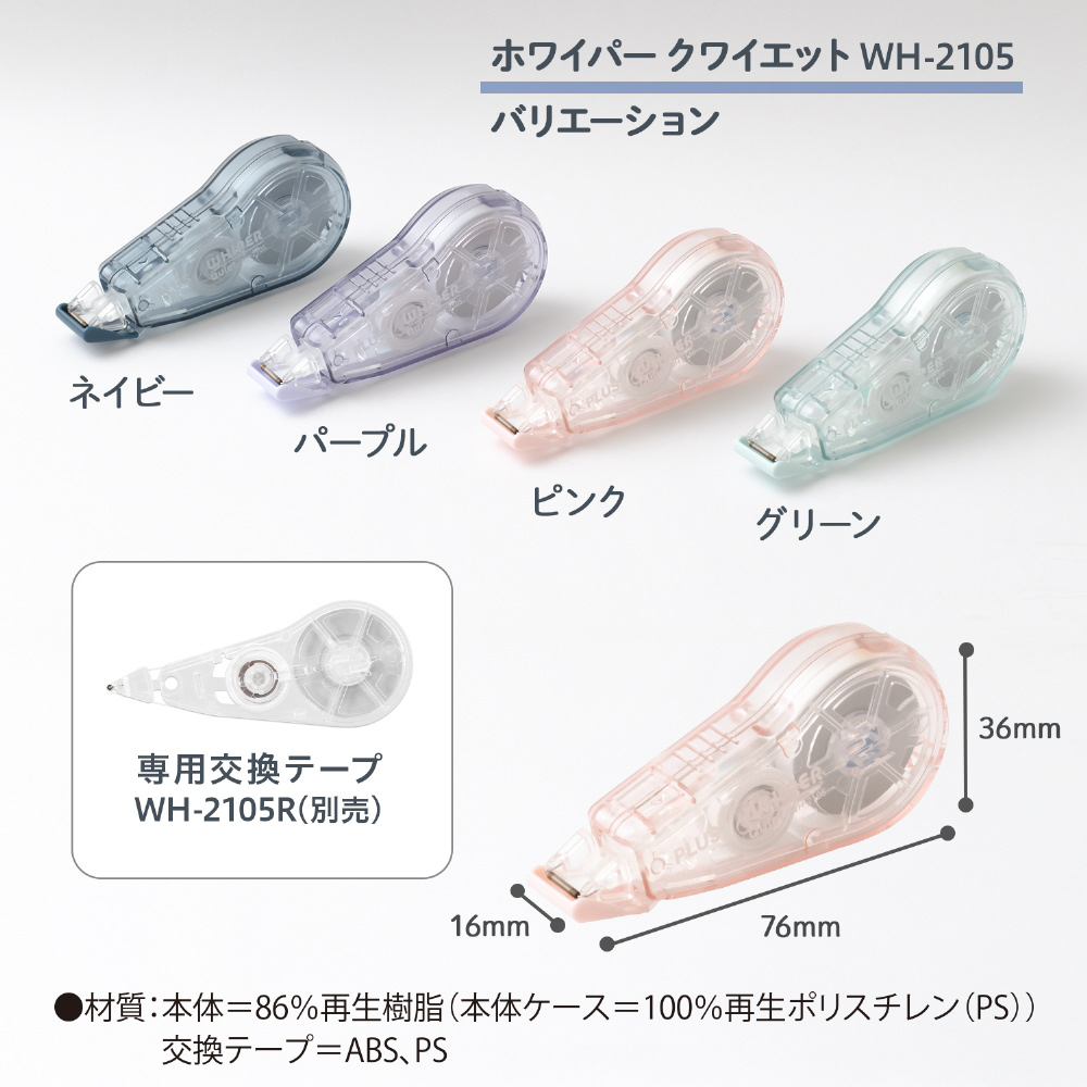 【材質】本体=86%再生樹脂(本体ケース=100%再生ポリスチレン(PS))交換テープ=ABS、PS