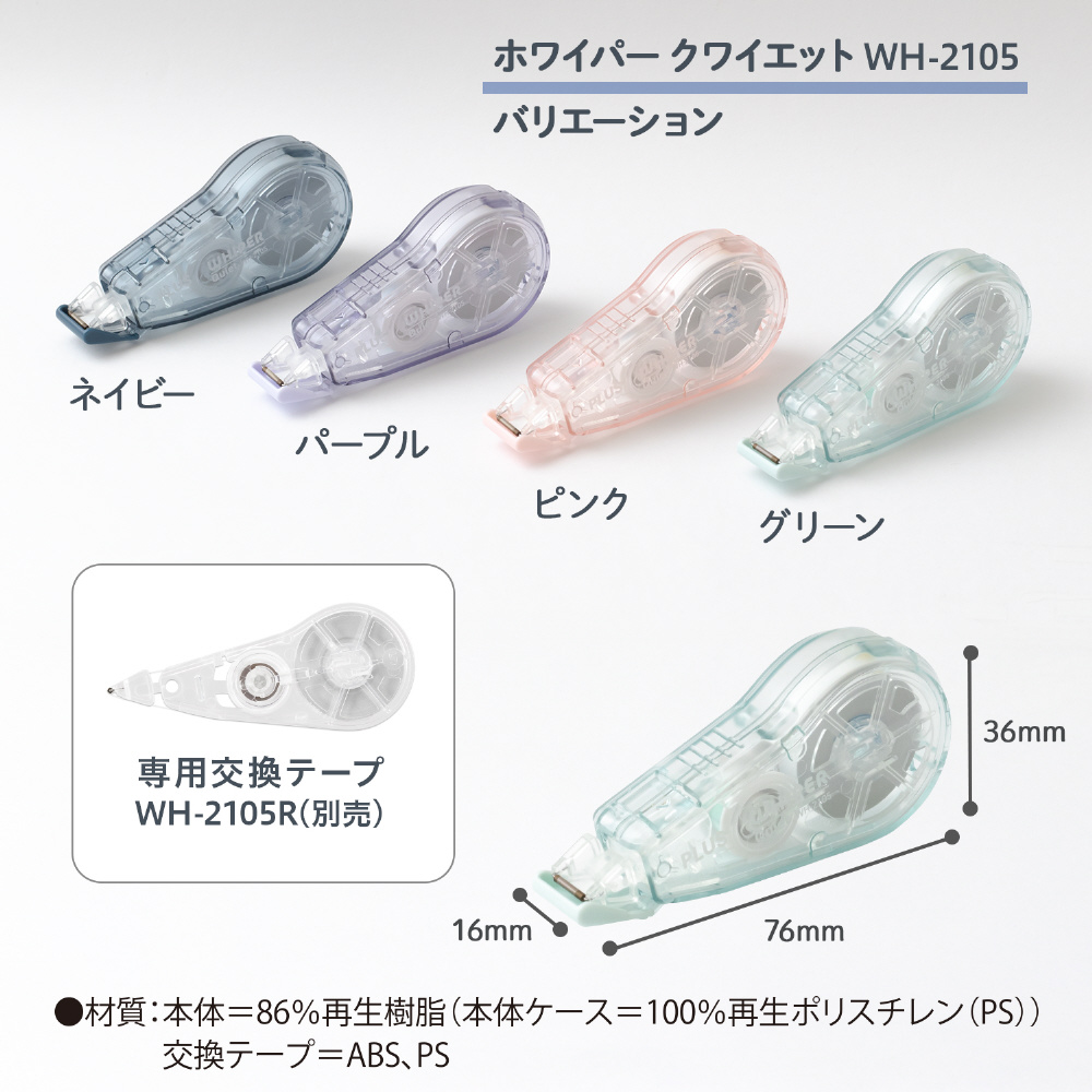 【材質】本体=86%再生樹脂(本体ケース=100%再生ポリスチレン(PS))交換テープ=ABS、PS