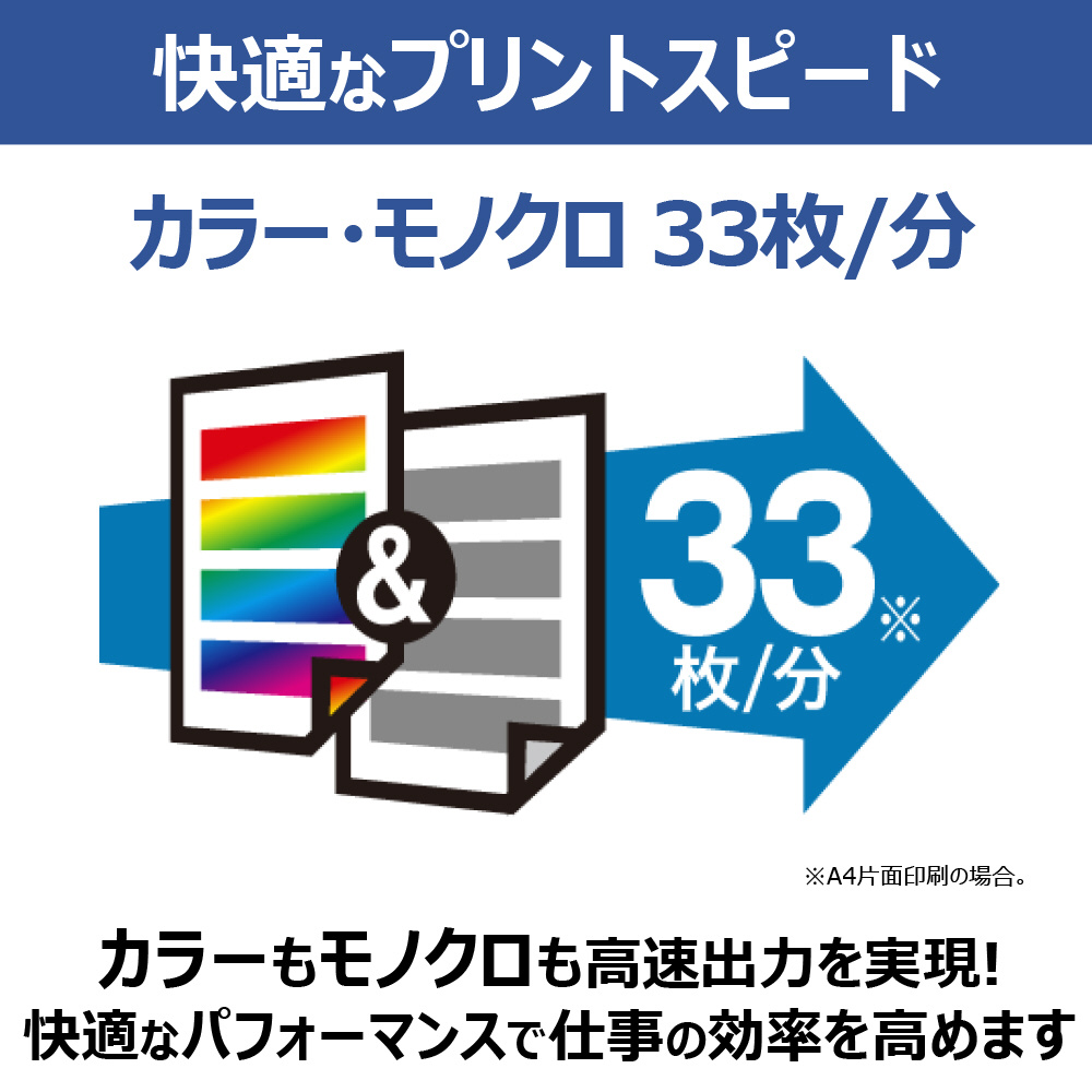 カラー・モノクロともに33枚/分の連続出力を実現。