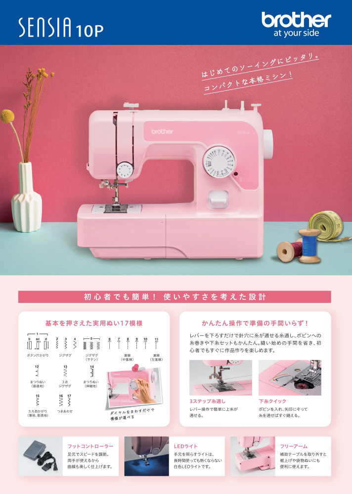 はじめてのソーイングにピッタリ!コンパクトな本格ミシン!