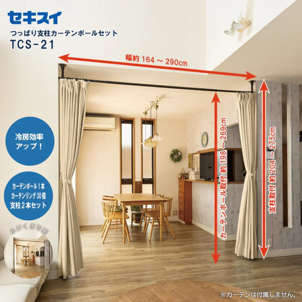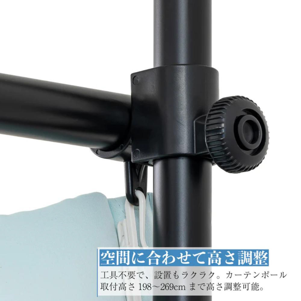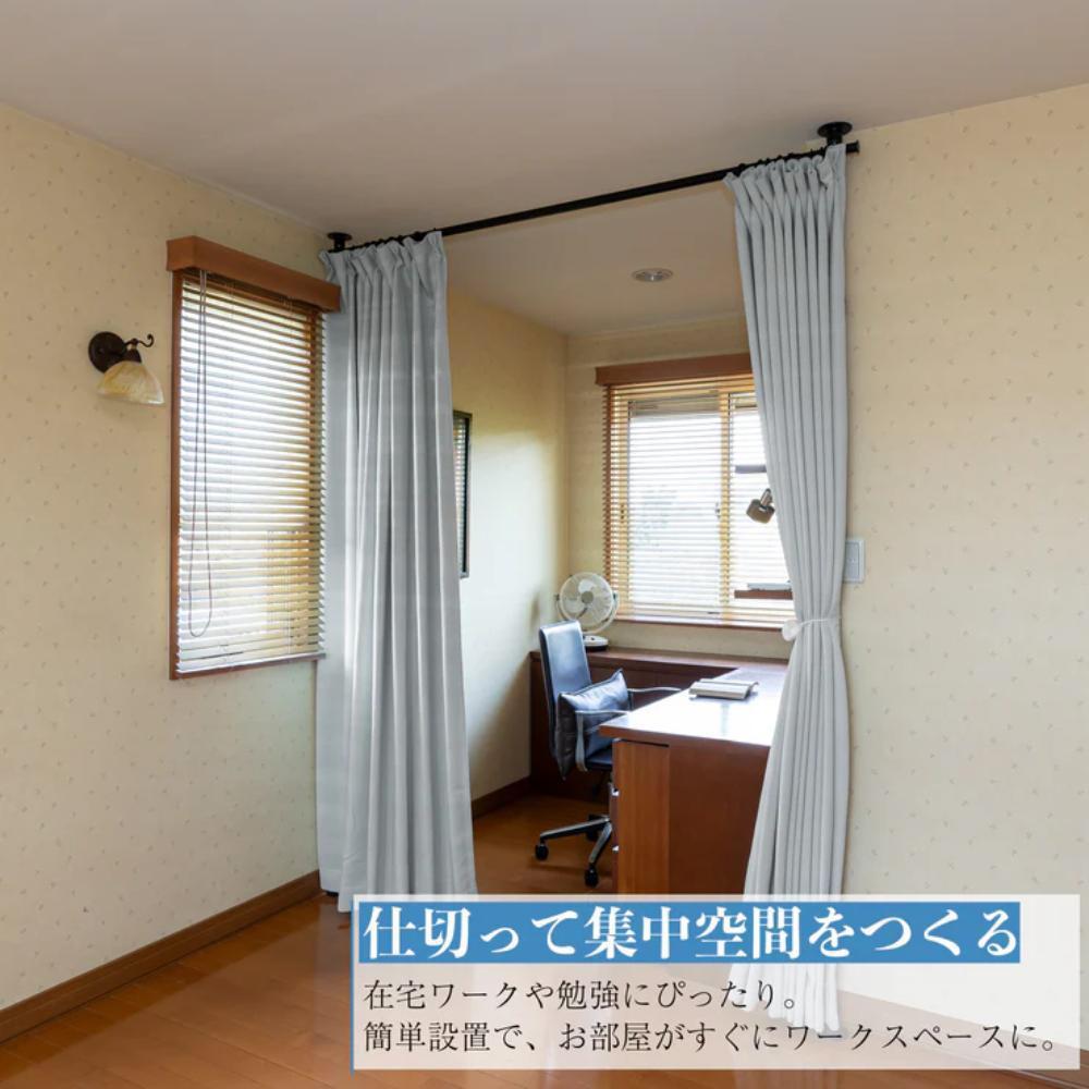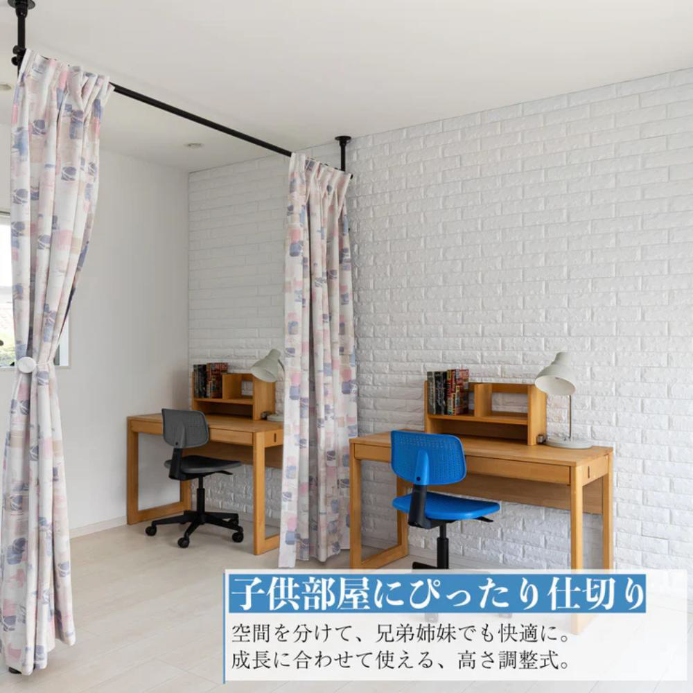 つっぱりカーテンポールセット 2本支柱 間仕切り 目隠し パーテーション ブラック TCS-21
