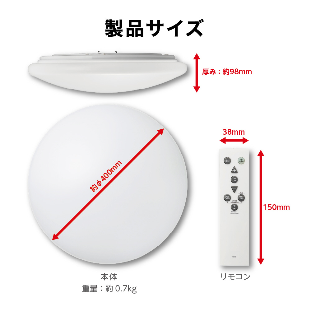 ORIGINAL BASIC シーリングライト 調光7段階 8畳用 3800ルーメン 取付簡単 リモコン付 切タイマー メモリー機能 サイズ400x98mm [リビング・ダイニング・寝室・子供部屋・ファミリーなどにおすすめ] 5年保証