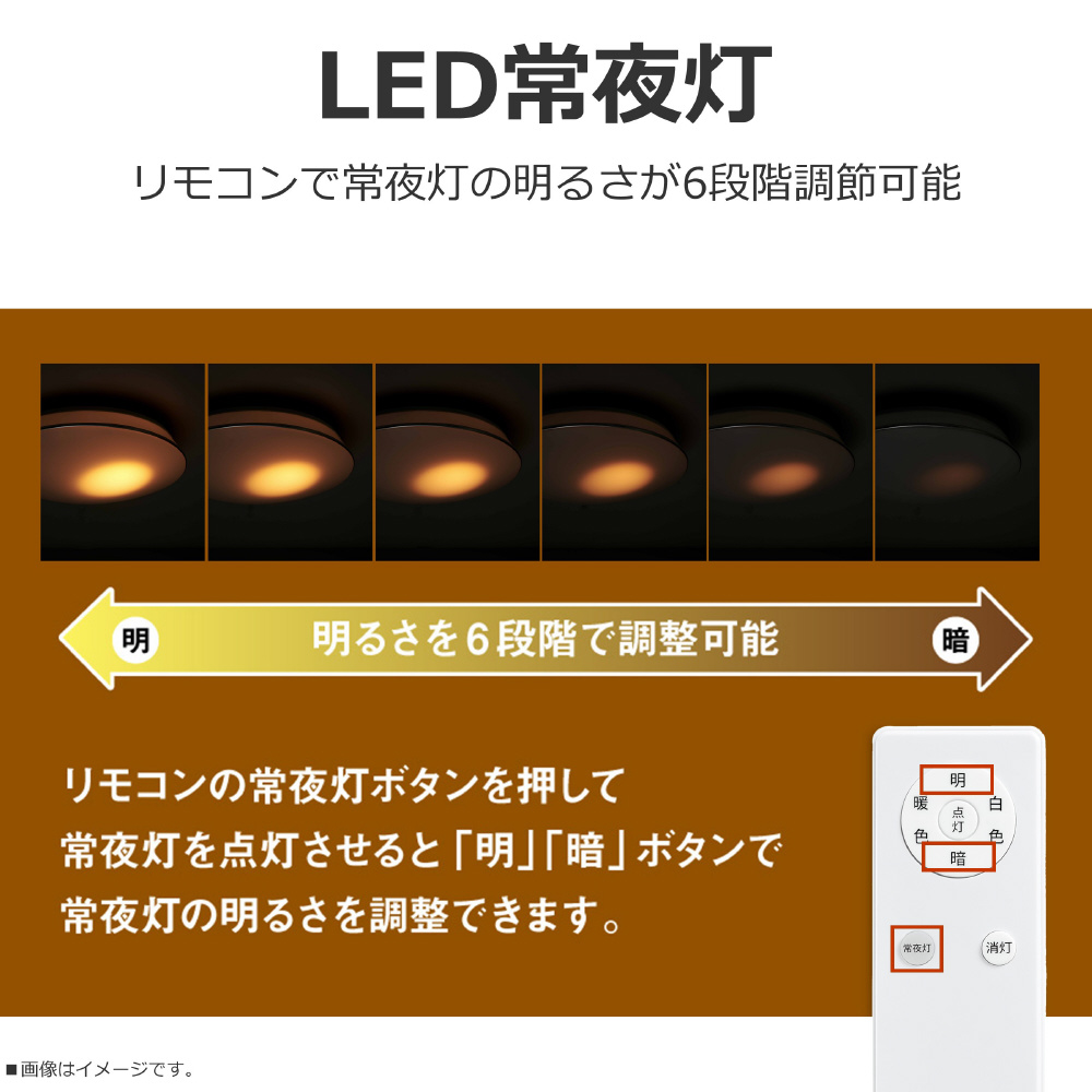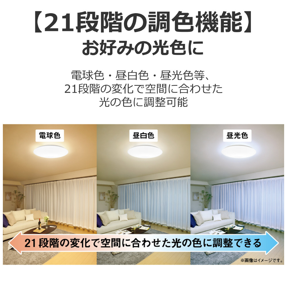 【調光】連続調光(100%?約5%) 【調色】電球色 - 昼光色(2700-6500K)【常夜灯】LED常夜灯6段階調光