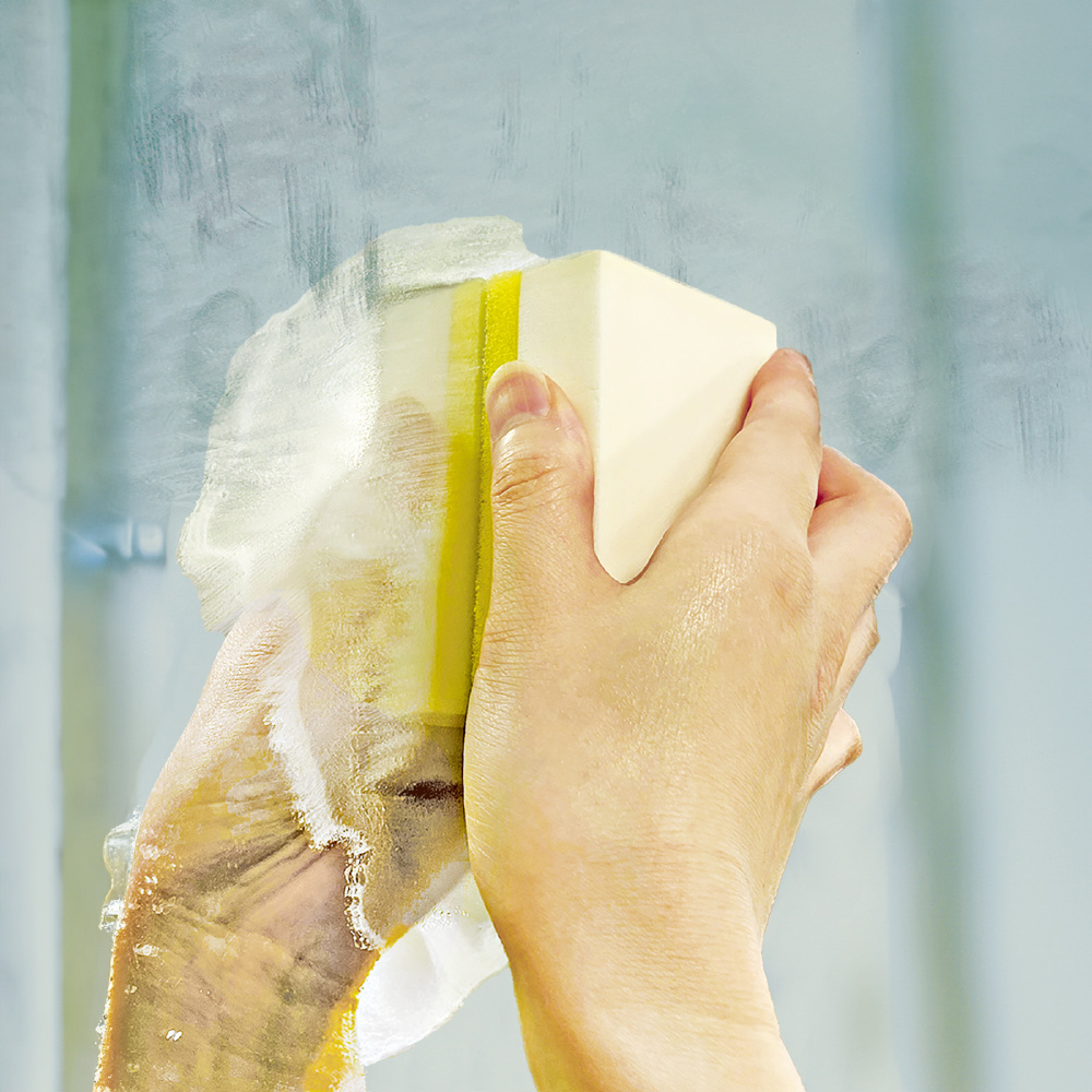 くもりの原因となるシャンプーや石ケンの固着汚れ・皮脂などのこびりついた油分汚れを、