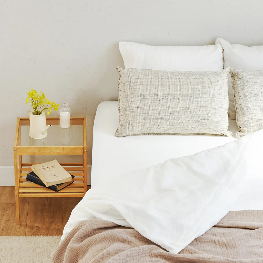 寝返りを打ってもズレにくい、NELL マットレス専用のシンデレラフィットシーツ。実用新案を取得済。