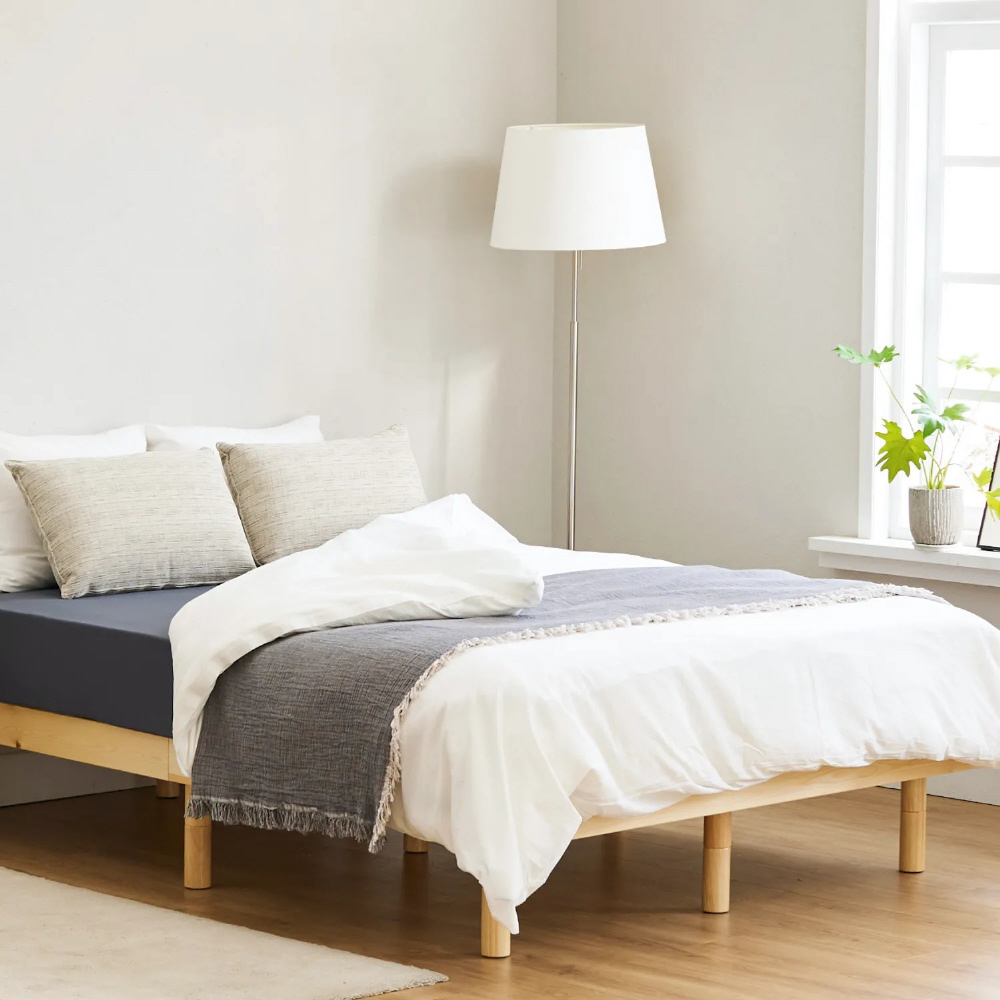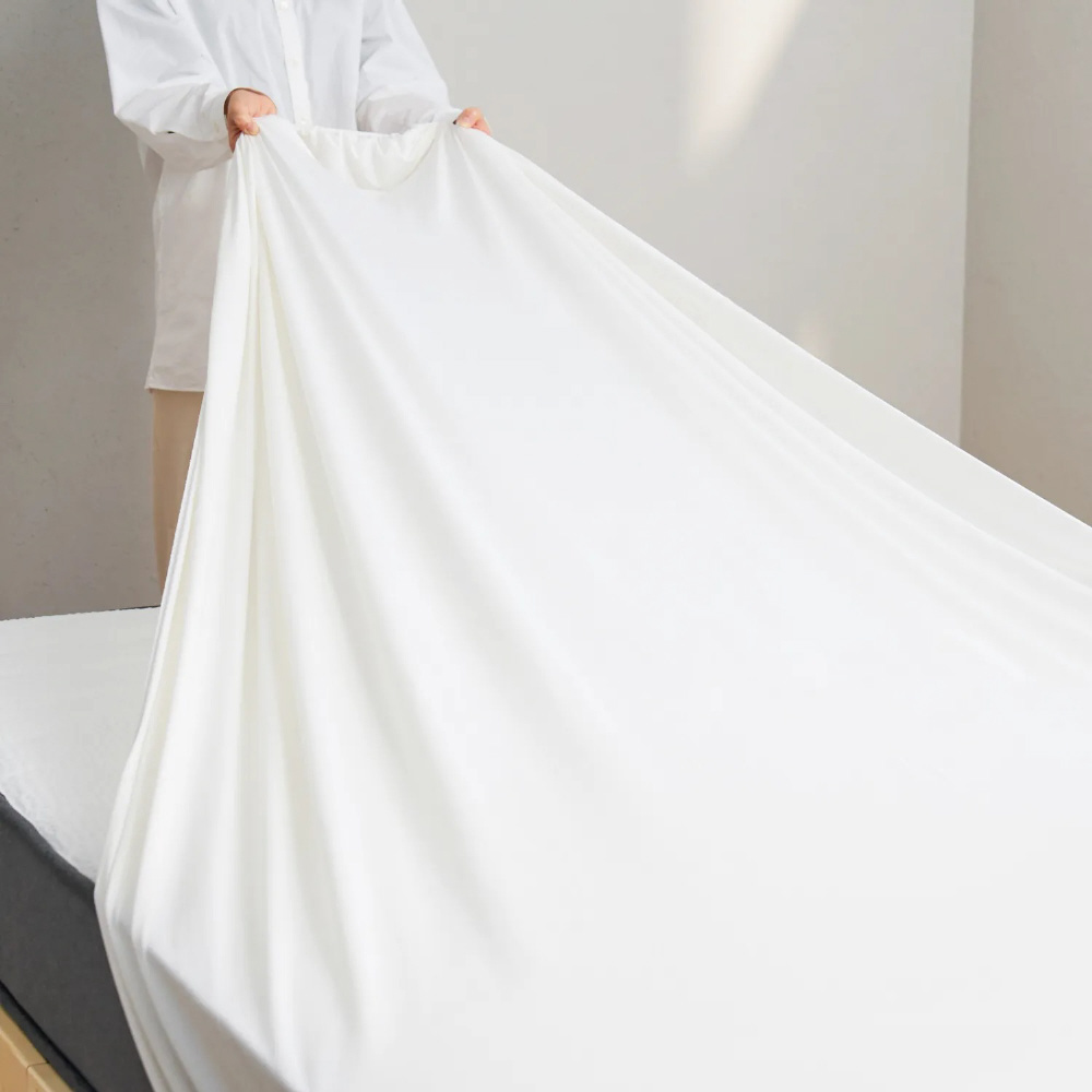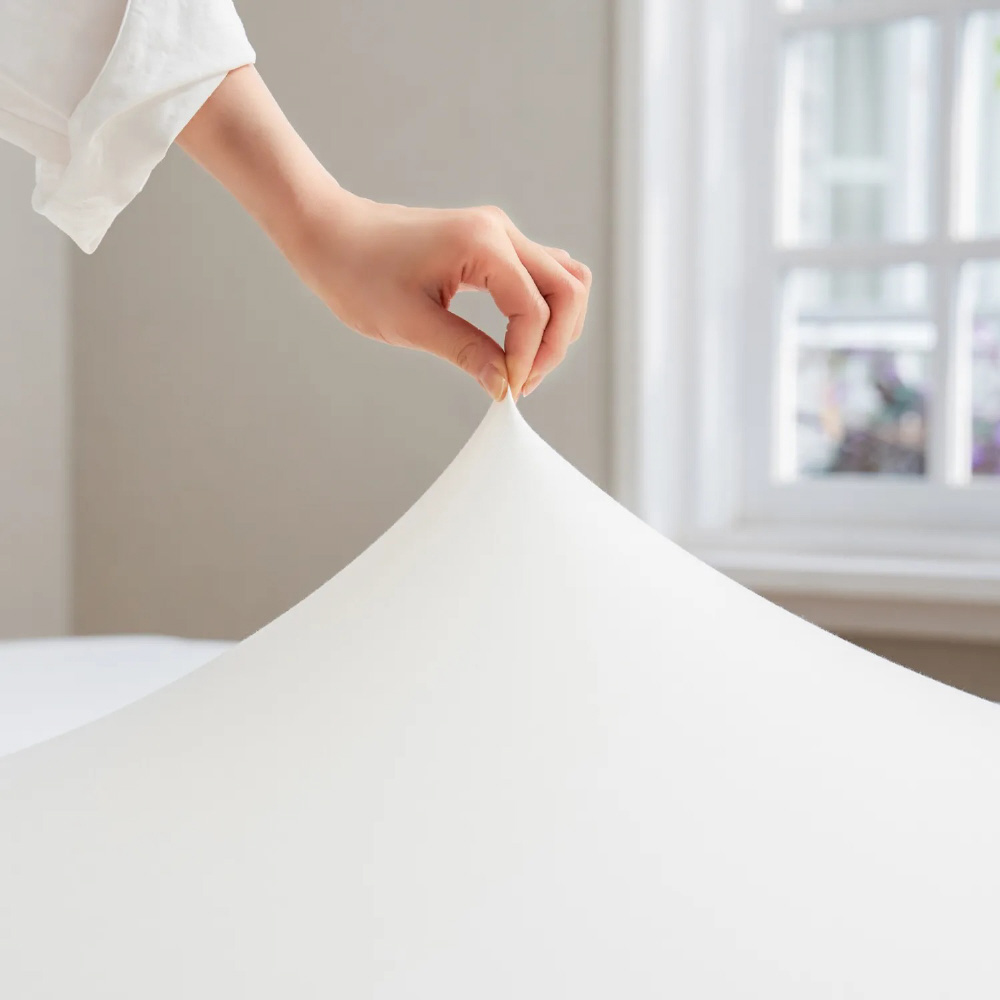 寝返りを打ってもズレにくい、NELL マットレス専用のシンデレラフィットシーツ。実用新案を取得済。