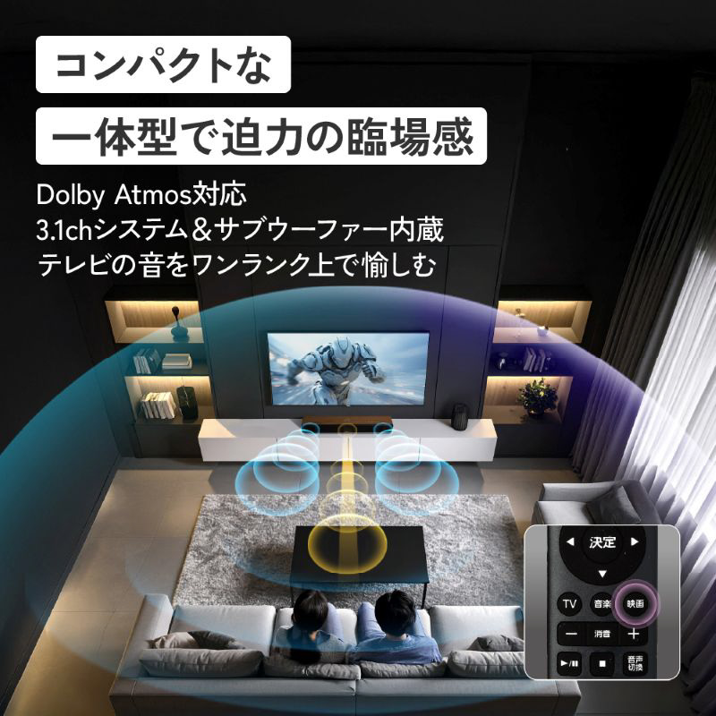 ■ Dolby Atmos対応3.1chシステム&サブウーハー内蔵、臨場感あふれる立体サウンドを再現